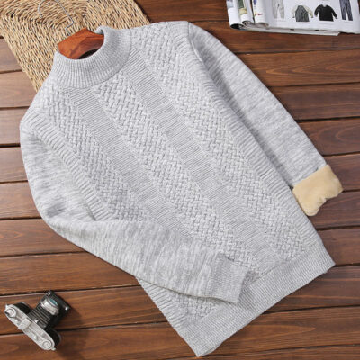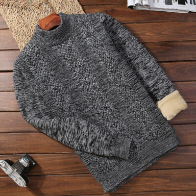 Mùa đông dày cộng với nhung dày áo len nam cổ cao nửa phiên bản Hàn Quốc của xu hướng mỏng áo len cá tính quần áo nam ấm áp