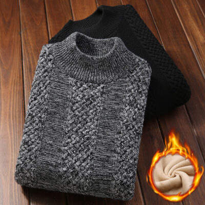 Mùa đông dày cộng với nhung dày áo len nam cổ cao nửa phiên bản Hàn Quốc của xu hướng mỏng áo len cá tính quần áo nam ấm áp