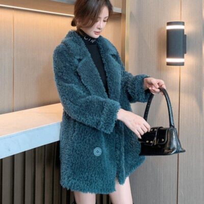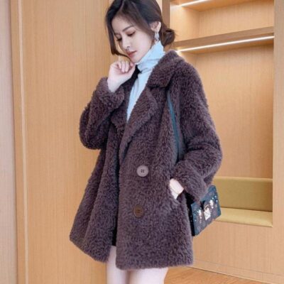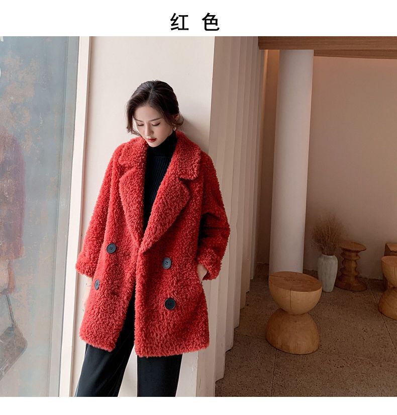 Mùa Đông Giữa Dài Áo Khoác Nỉ Nữ 2023 Mới Phù Hợp Với Cổ Giả Thịt Cừu Lông Nhung Tích Hợp Hạt Áo Khoác Nhung