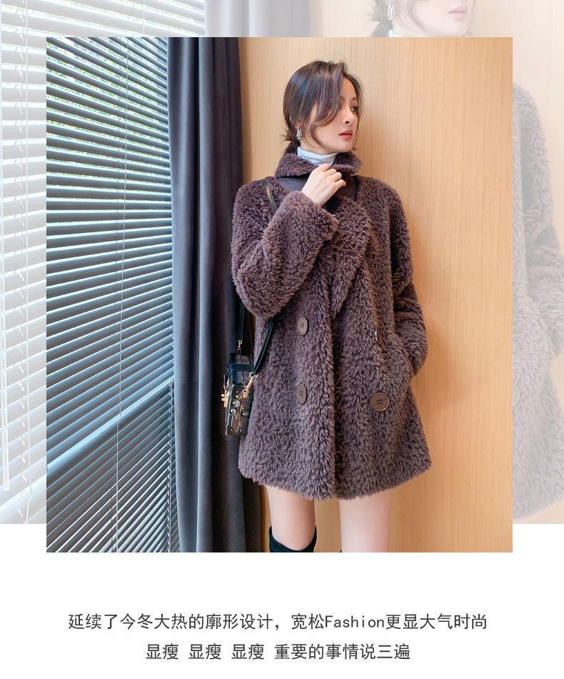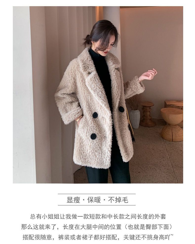Mùa Đông Giữa Dài Áo Khoác Nỉ Nữ 2023 Mới Phù Hợp Với Cổ Giả Thịt Cừu Lông Nhung Tích Hợp Hạt Áo Khoác Nhung