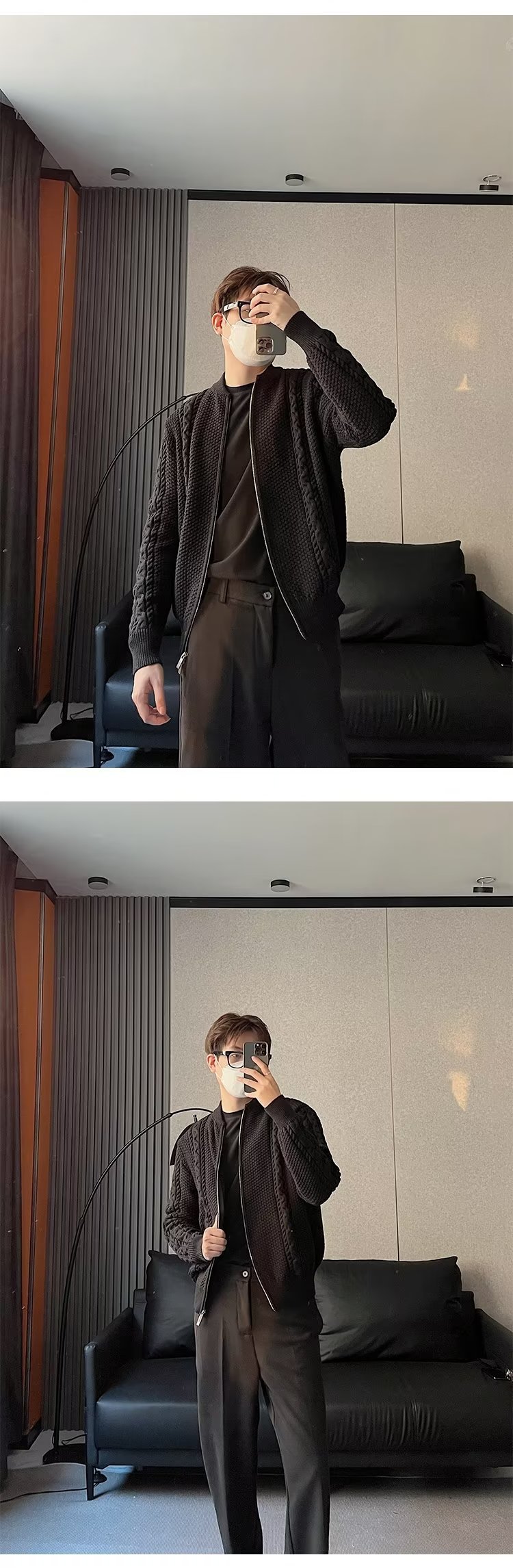 Mùa Đông Mới Dây Kéo Dệt Kim Cardigan Nam Nhẹ Trưởng Thành Retro Xoắn Xoắn Bóng Chày Cổ Áo Len Áo Len Phối Xu Hướng