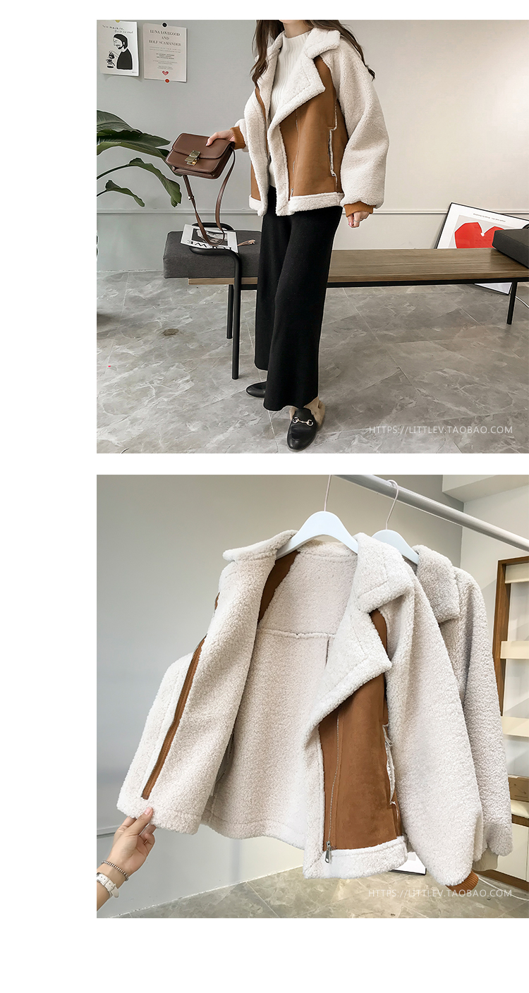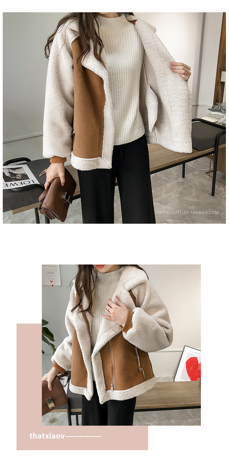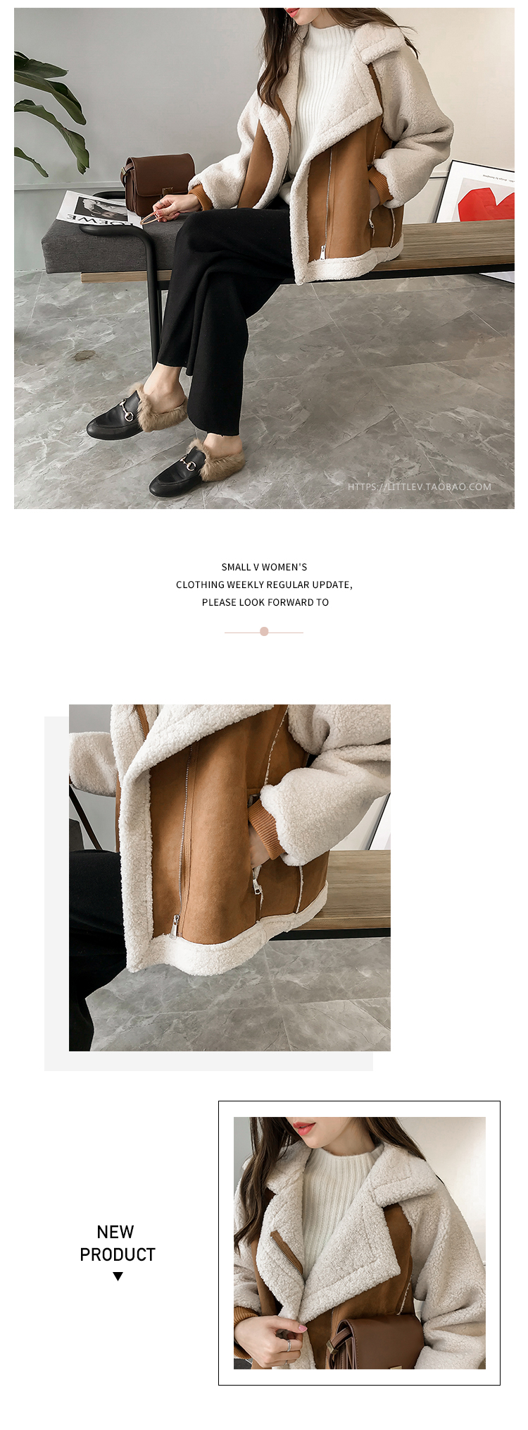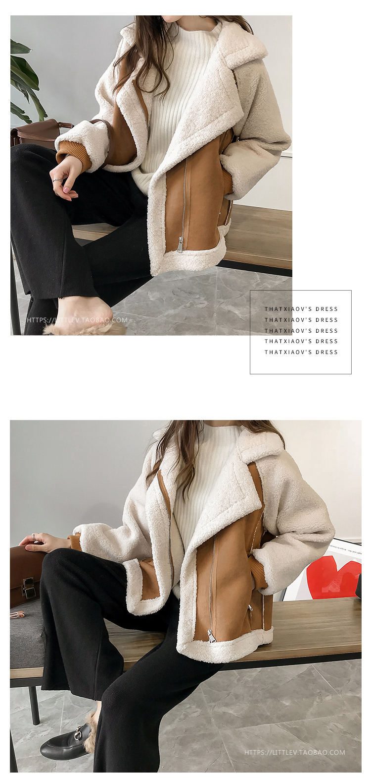 Mùa Đông Mới Ve Áo Lớn Thịt Cừu Áo Khoác Len Rời BF Phong Cách Lông Một Da Lộn Áo Khoác Hợp Thời Trang
