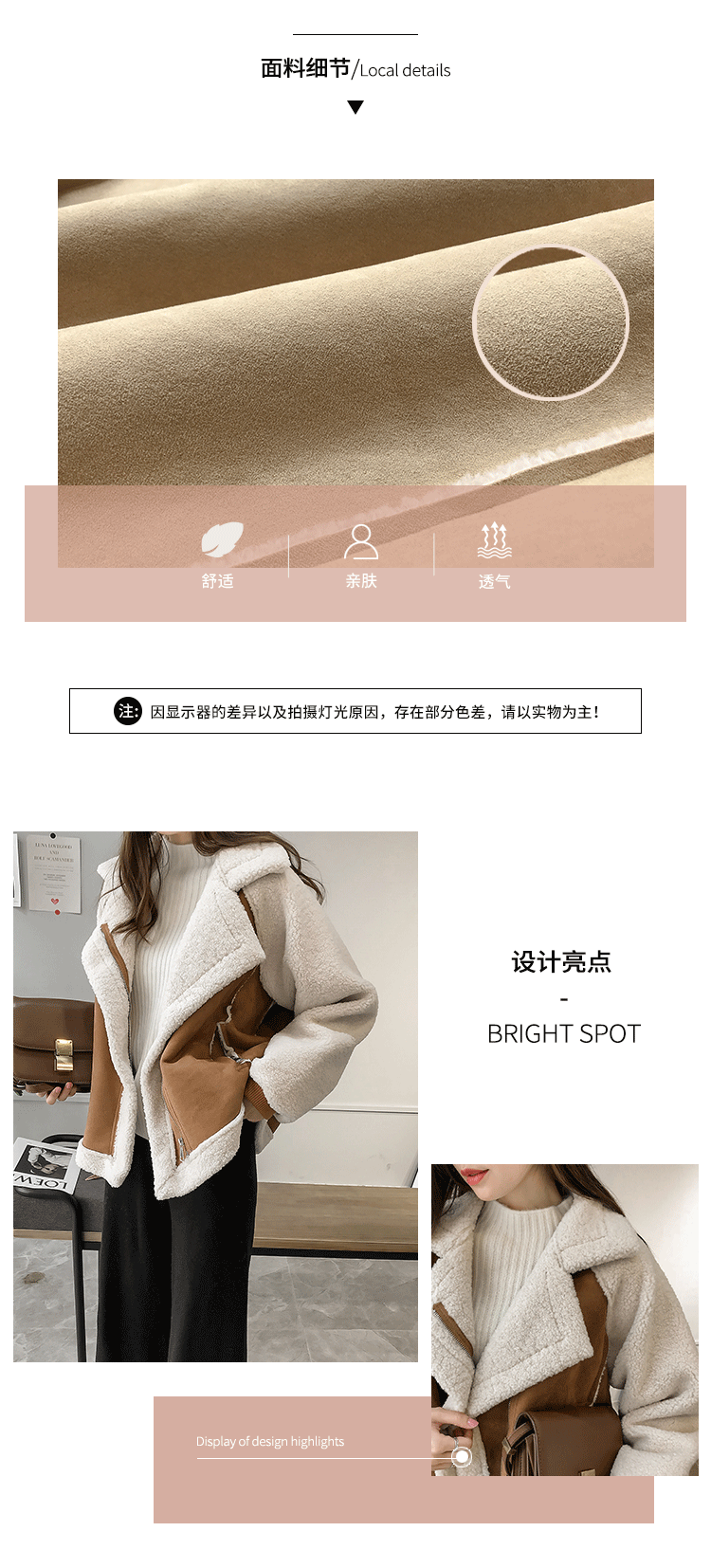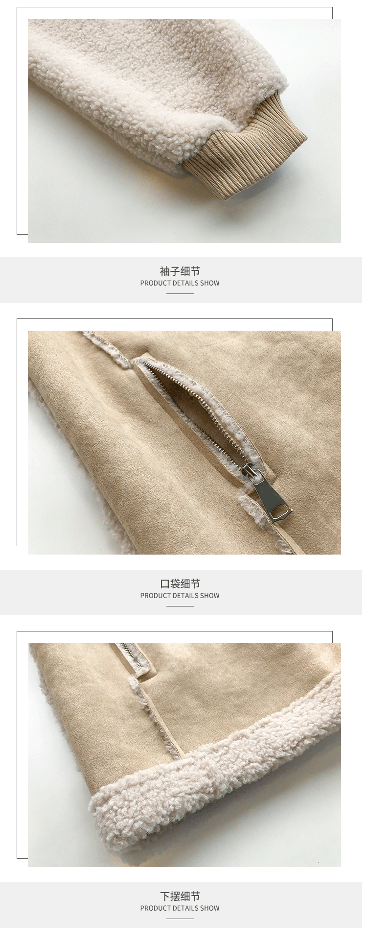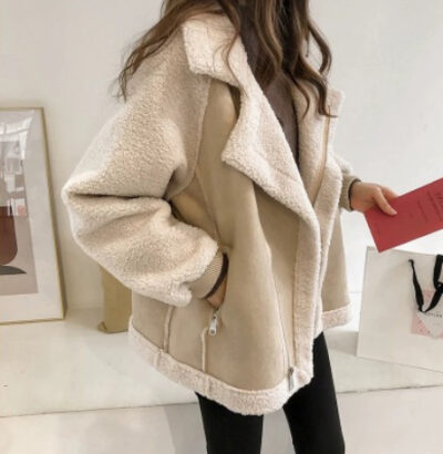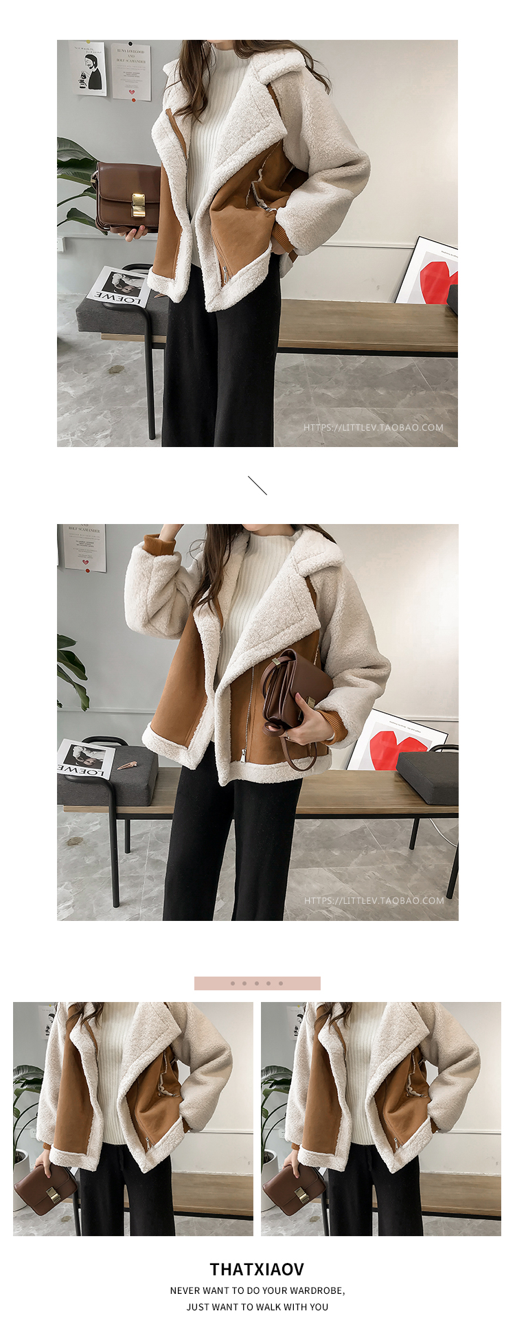 Mùa Đông Mới Ve Áo Lớn Thịt Cừu Áo Khoác Len Rời BF Phong Cách Lông Một Da Lộn Áo Khoác Hợp Thời Trang