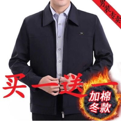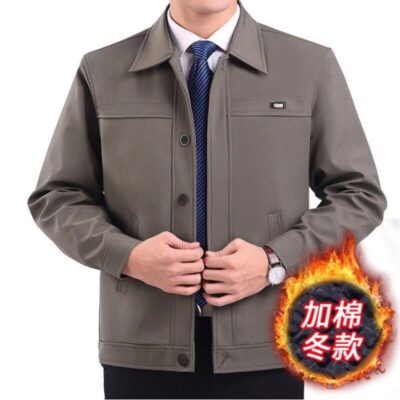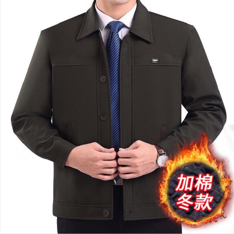 Mùa đông nam trung niên và cao tuổi áo khoác đệm bông áo khoác áo khoác nam trung niên và cao tuổi áo khoác có ve áo cha quần áo nam