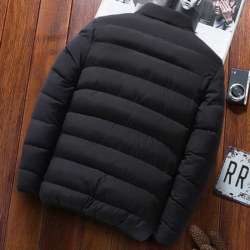 Mùa Đông Nam Xuống Áo Khoác Màu Đứng Dây Kéo Cổ Dày Áo Ấm Thời Trang Ngoài Trời Áo Khoác Thường 5XL
