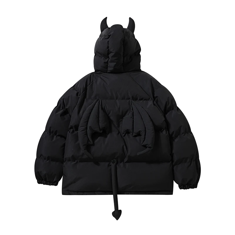 Winter Parkas Jacket Men Women Street Devil Horns Wing.Doll Bag Hooded Padded Coat Thick Warm Hip Hop Puffer Bubble Coats Unisex