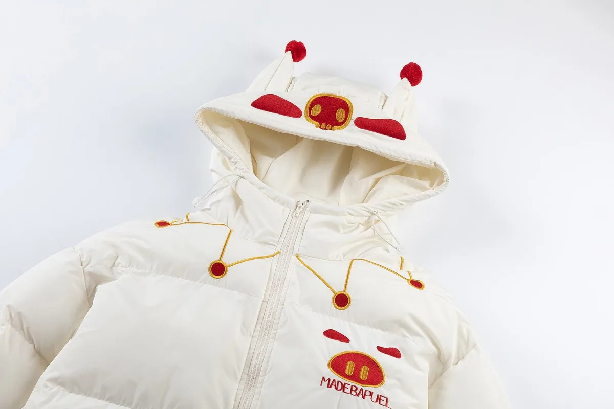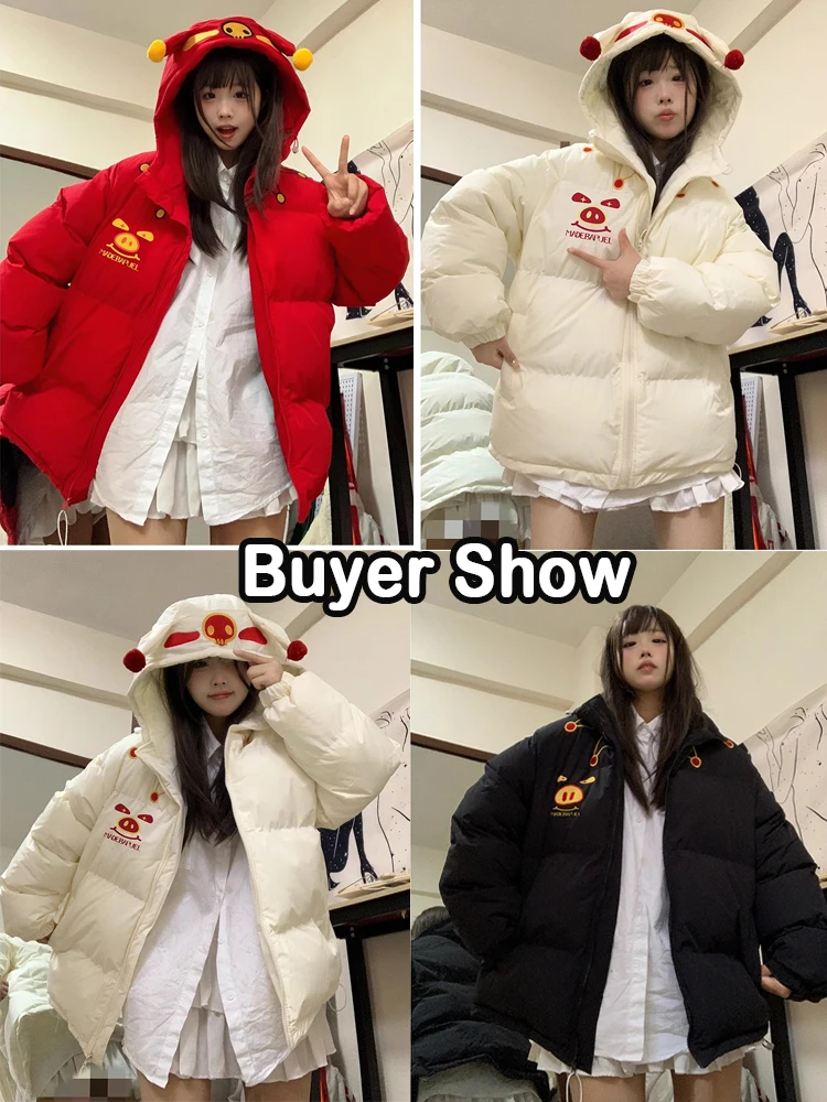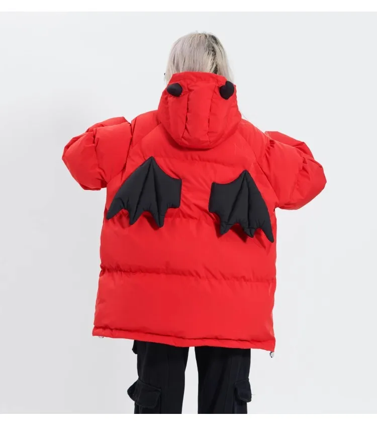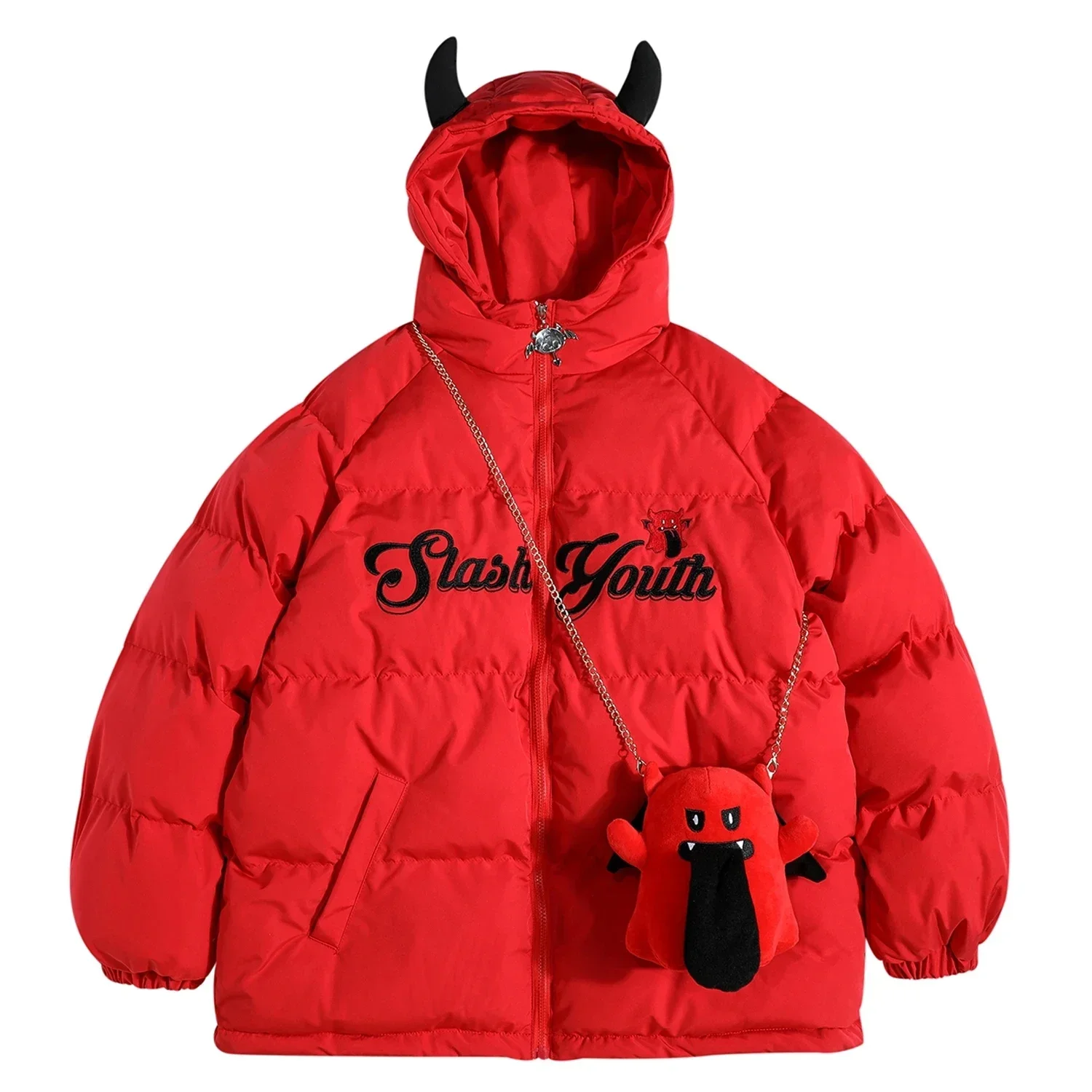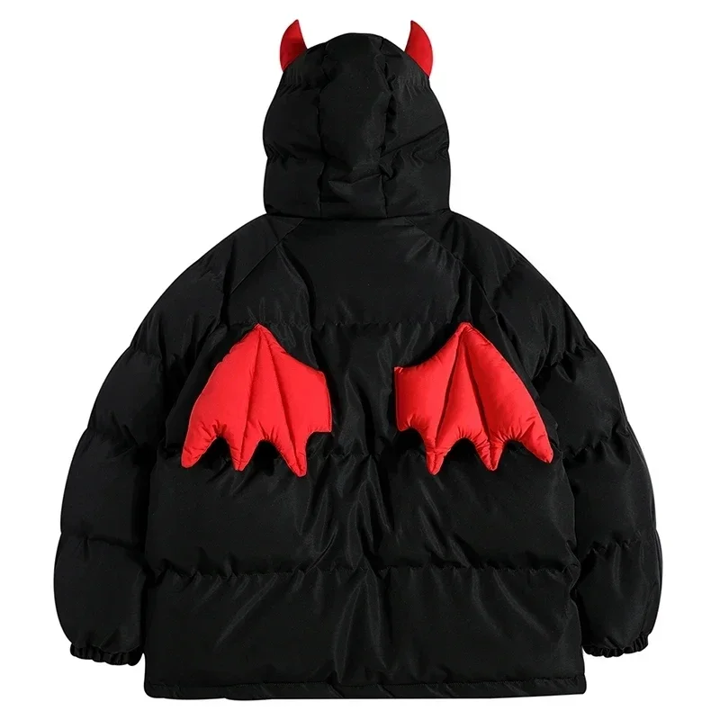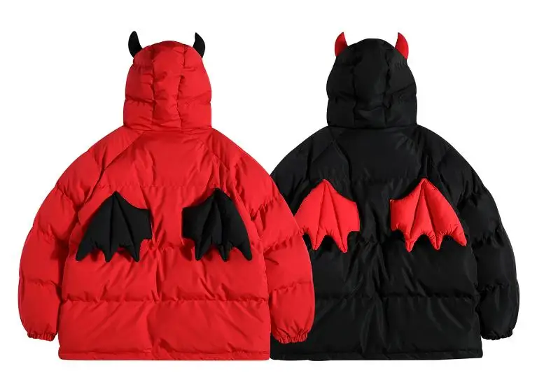 Winter Parkas Jacket Men Women Street Devil Horns Wing.Doll Bag Hooded Padded Coat Thick Warm Hip Hop Puffer Bubble Coats Unisex