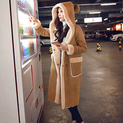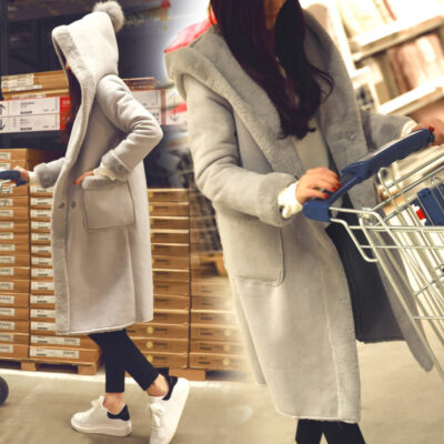 Mùa đông Plus nhung dày tính khí có mũ trùm đầu giả cừu len cotton áo khoác nữ ins siêu nóng lông 1 lớp hợp thời trang