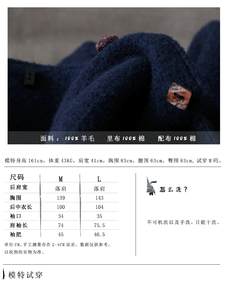 Hoa văn: Màu trơn Mã sản phẩm: Áo khoác hình tròn W561 Tên vải: Len Màu sắc: Xanh hải quân Danh mục sản phẩm: Áo khoác len nữ Loại tay áo: Tay áo thông thường Thành phần vải chính: Dù len xuyên biên giới Nguồn: Không Kích thước: M/L/L Loại phiên bản: Thẳng Chiều dài: Thông thường (50cm