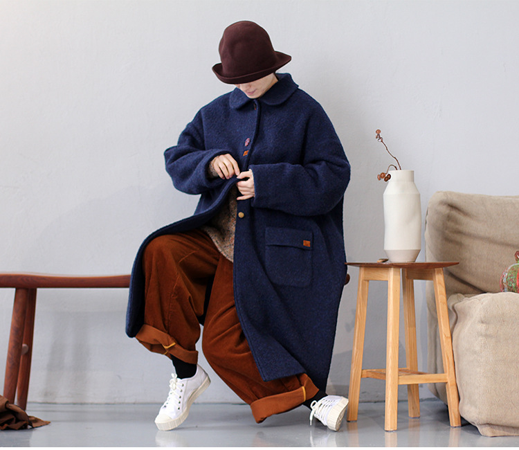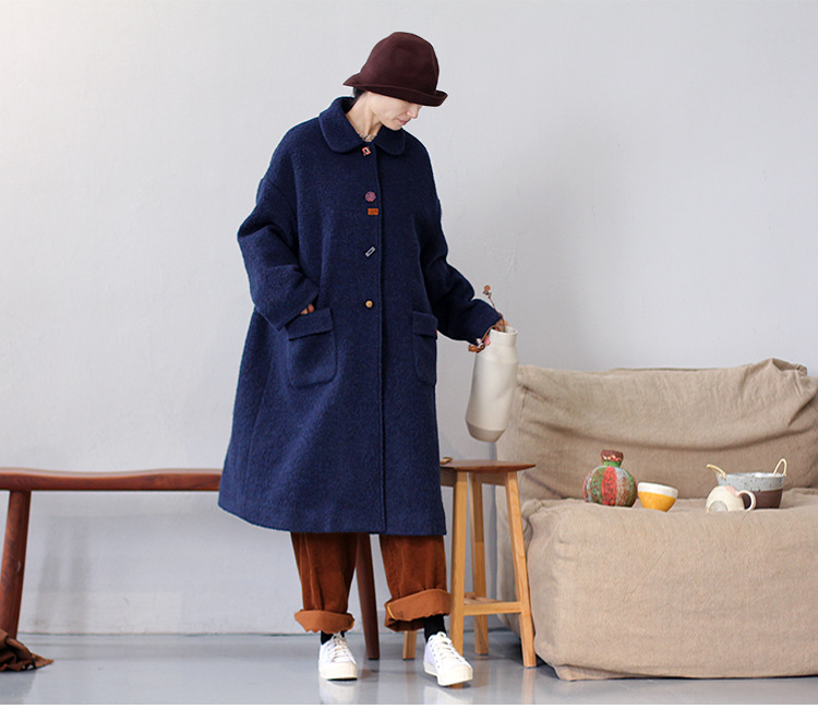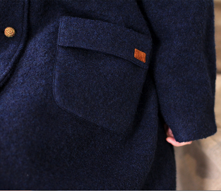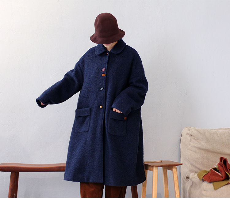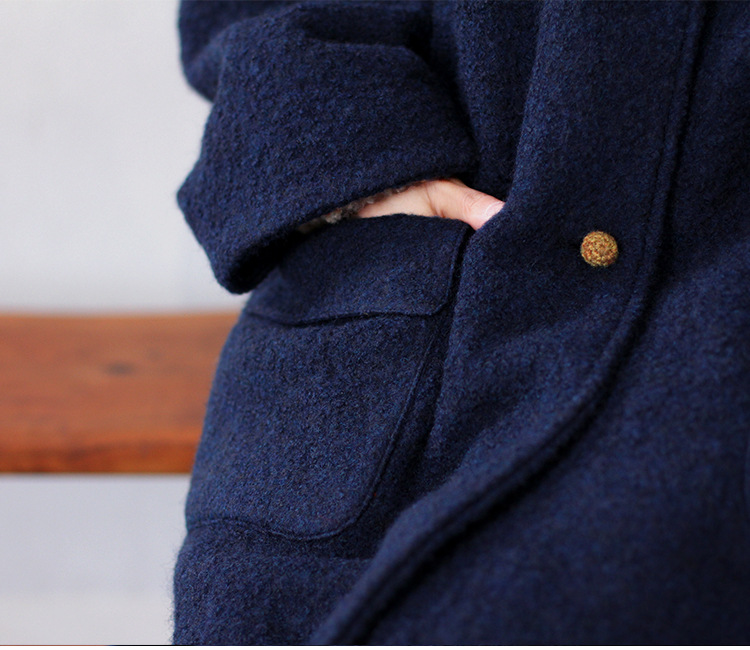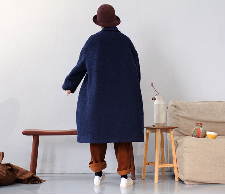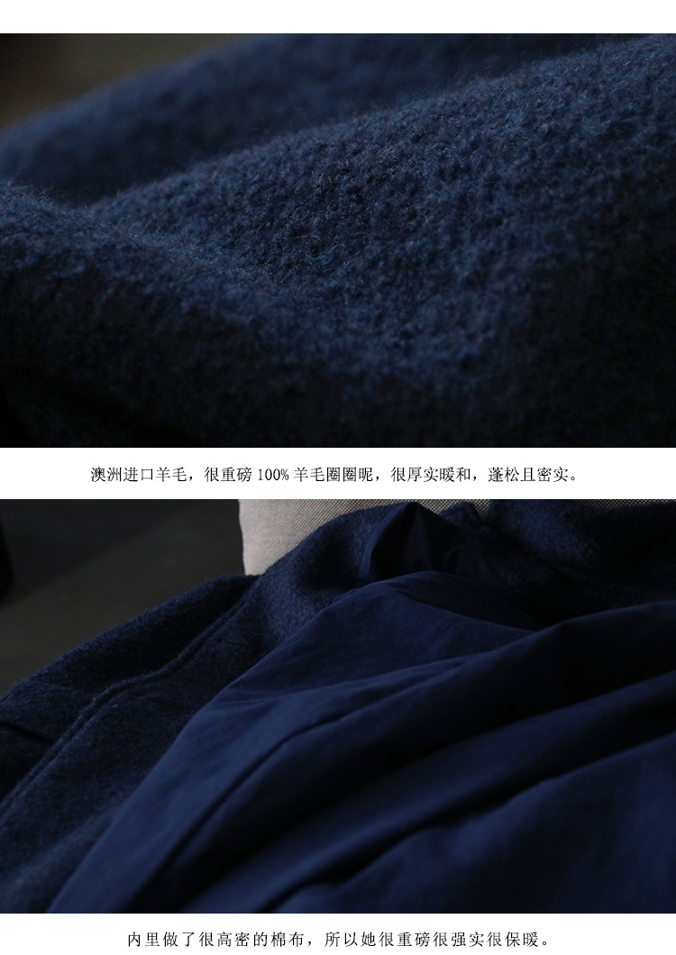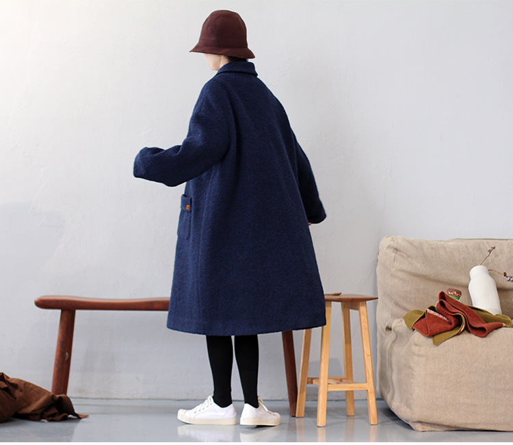 Mùa Đông Văn Học Nghệ Thuật Retro Len Nặng Ve Áo Lưng Điện Đơn Áo Gió Dài Ấm Áp Có Lông Áo Khoác