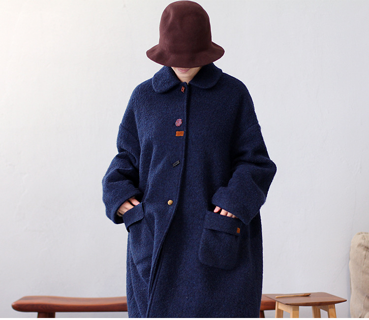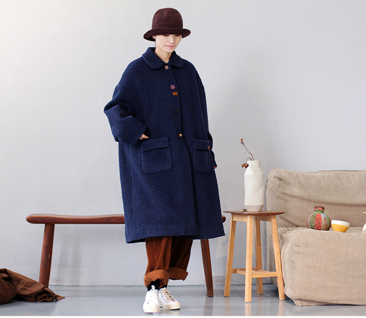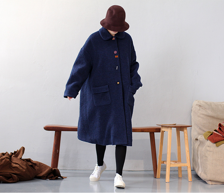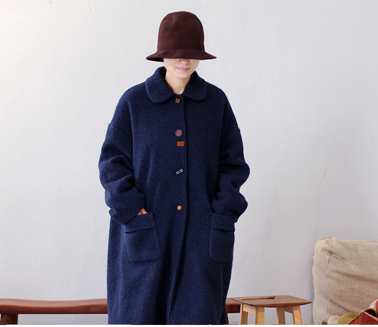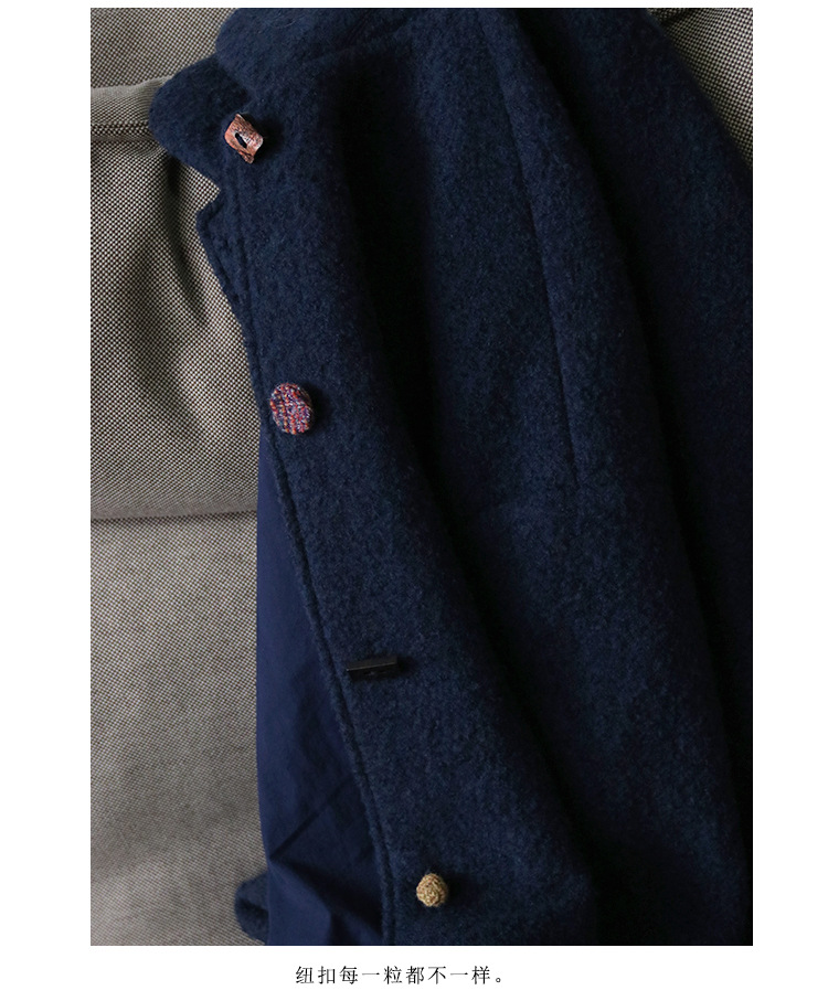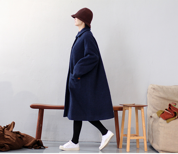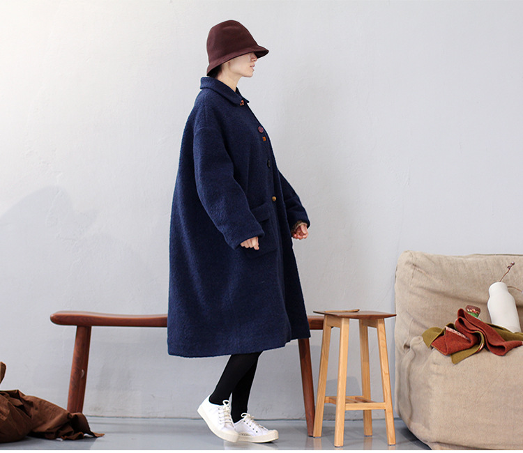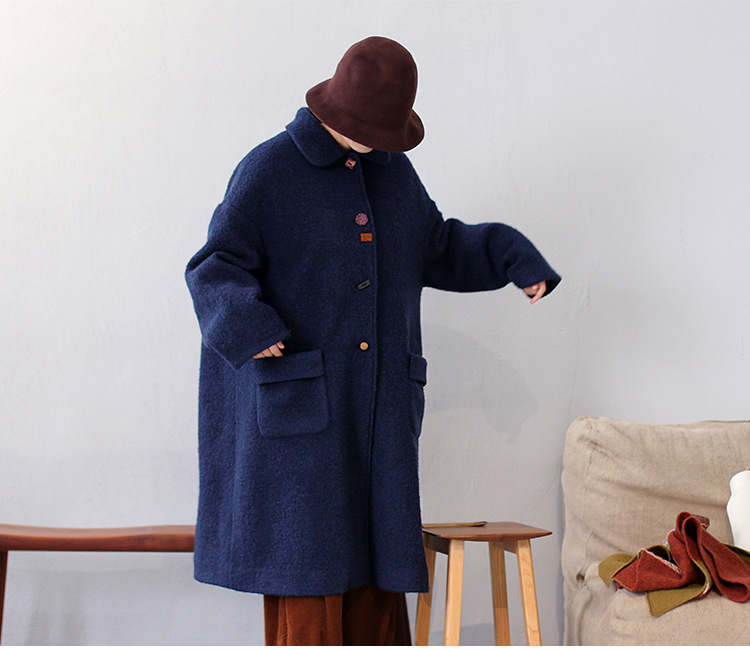 Mùa Đông Văn Học Nghệ Thuật Retro Len Nặng Ve Áo Lưng Điện Đơn Áo Gió Dài Ấm Áp Có Lông Áo Khoác