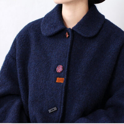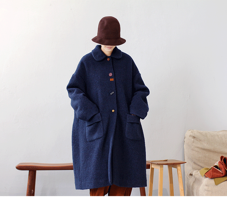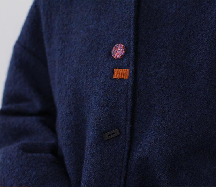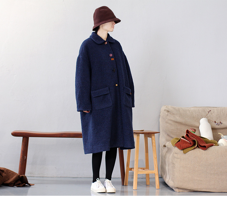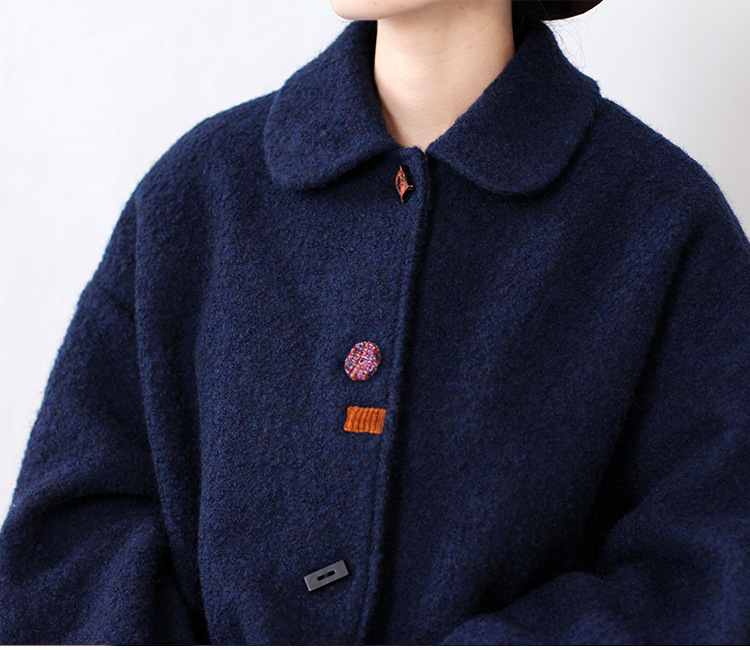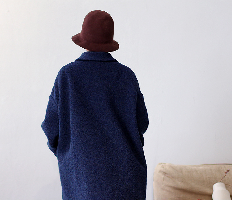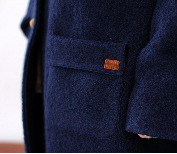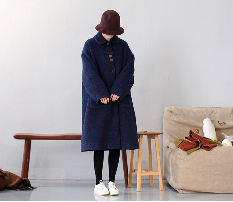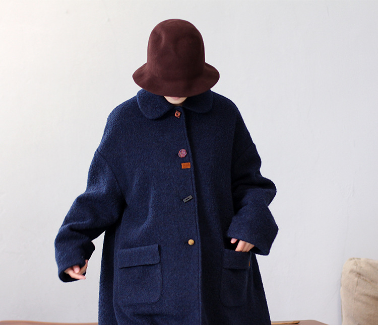 Mùa Đông Văn Học Nghệ Thuật Retro Len Nặng Ve Áo Lưng Điện Đơn Áo Gió Dài Ấm Áp Có Lông Áo Khoác