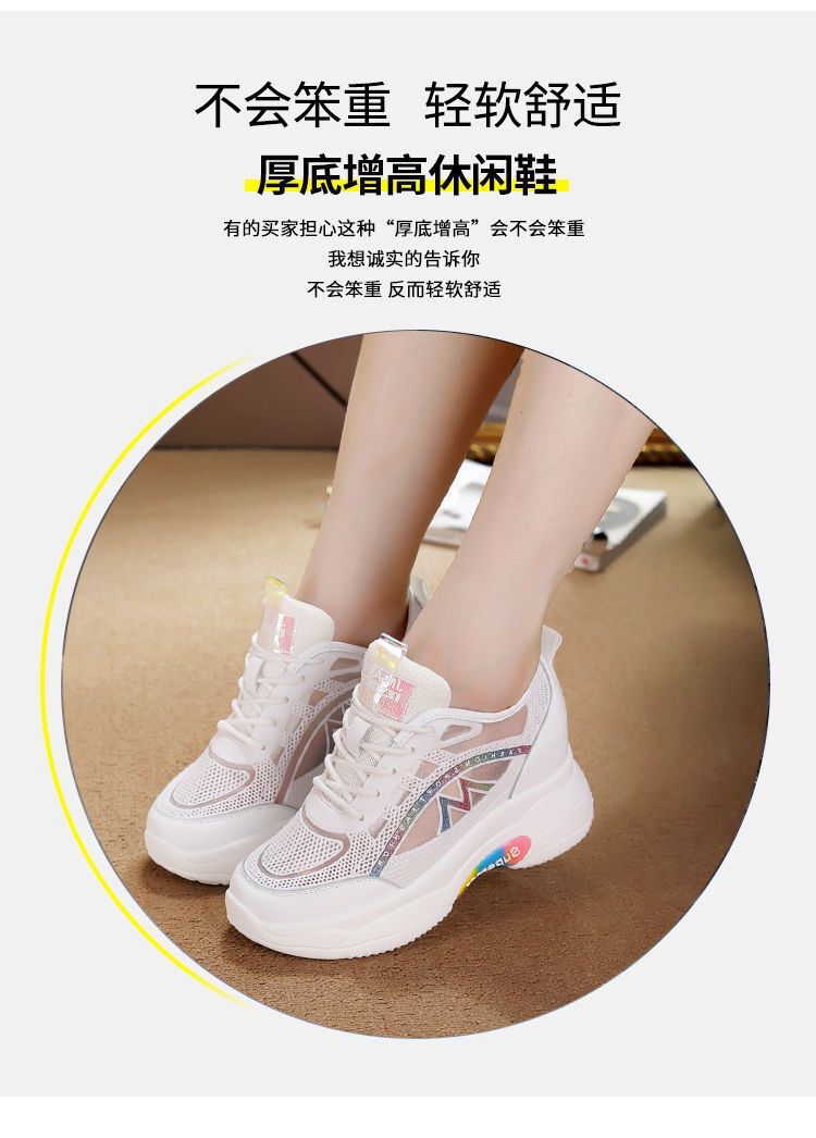 Mùa hè 2023 giày trắng mỏng thay mặt mùa hè bề mặt lưới thể thao thông thường du lịch da mềm bên trong giày nữ tăng chiều cao xuyên biên giới