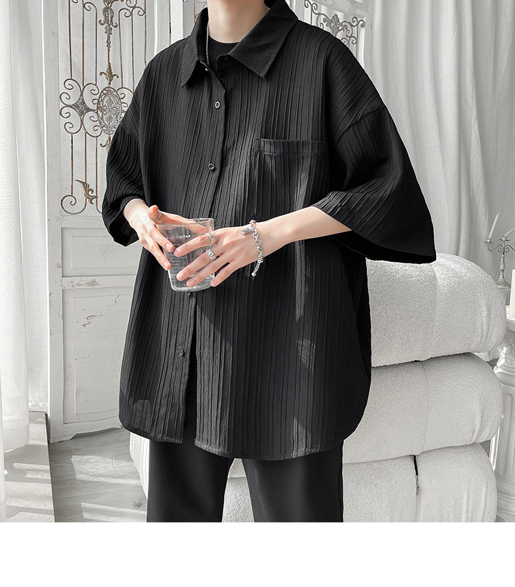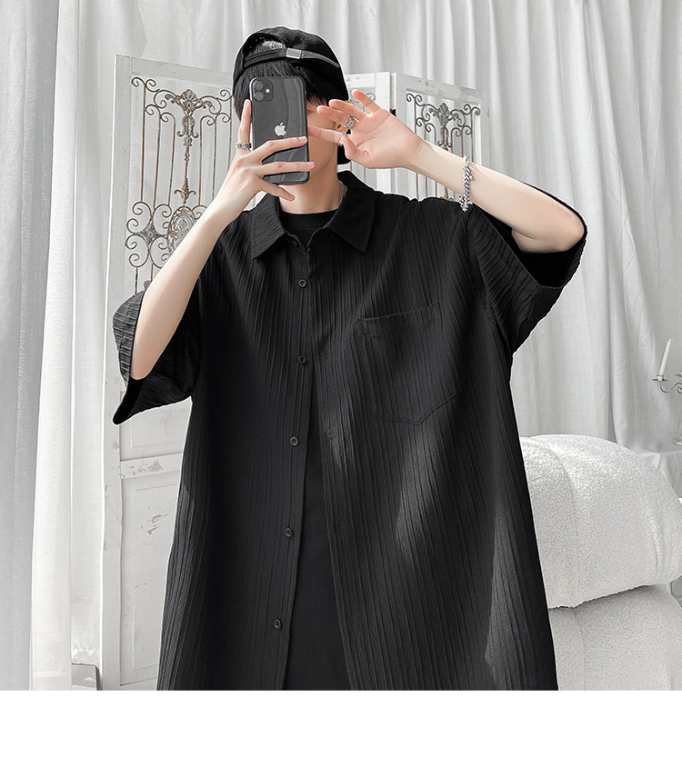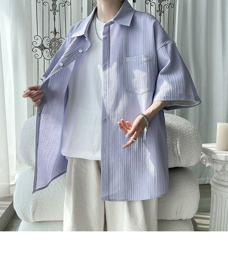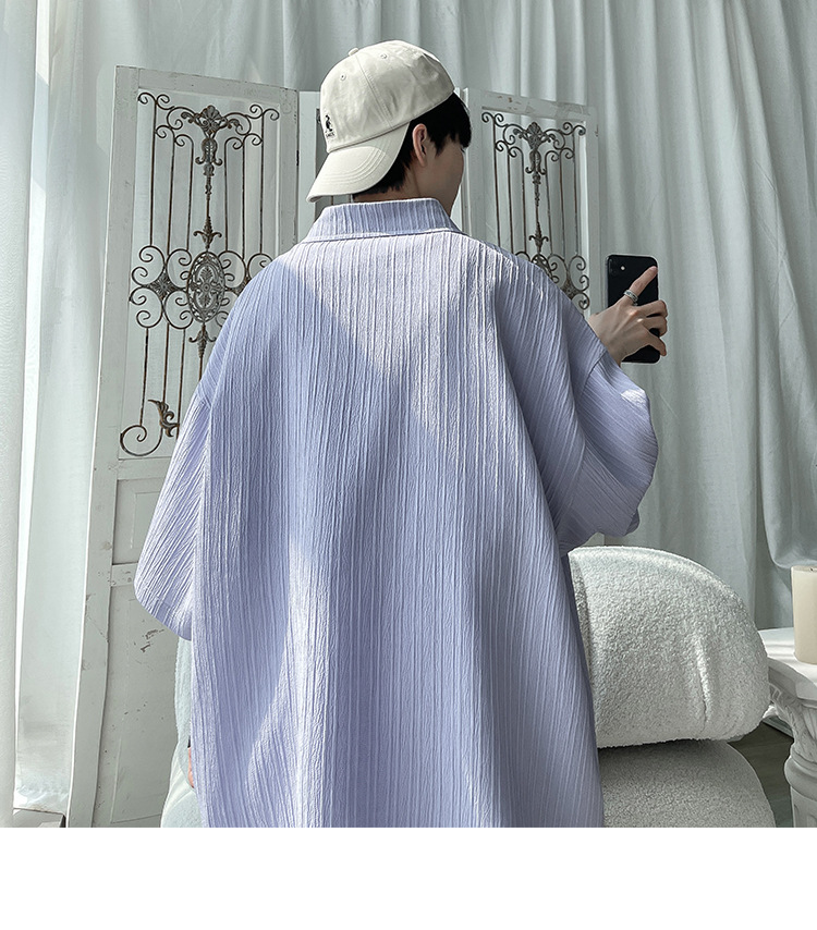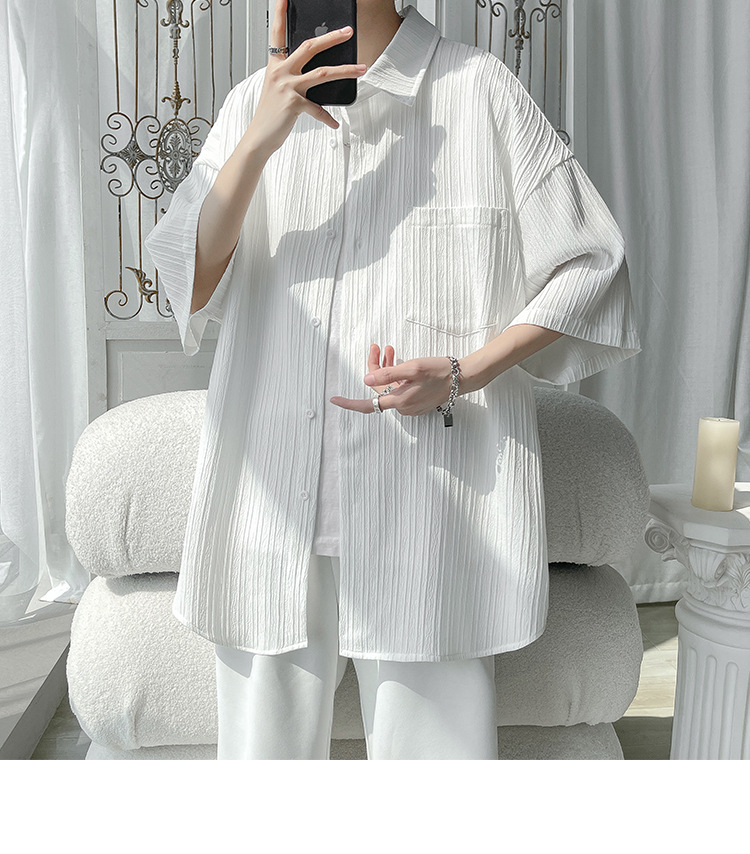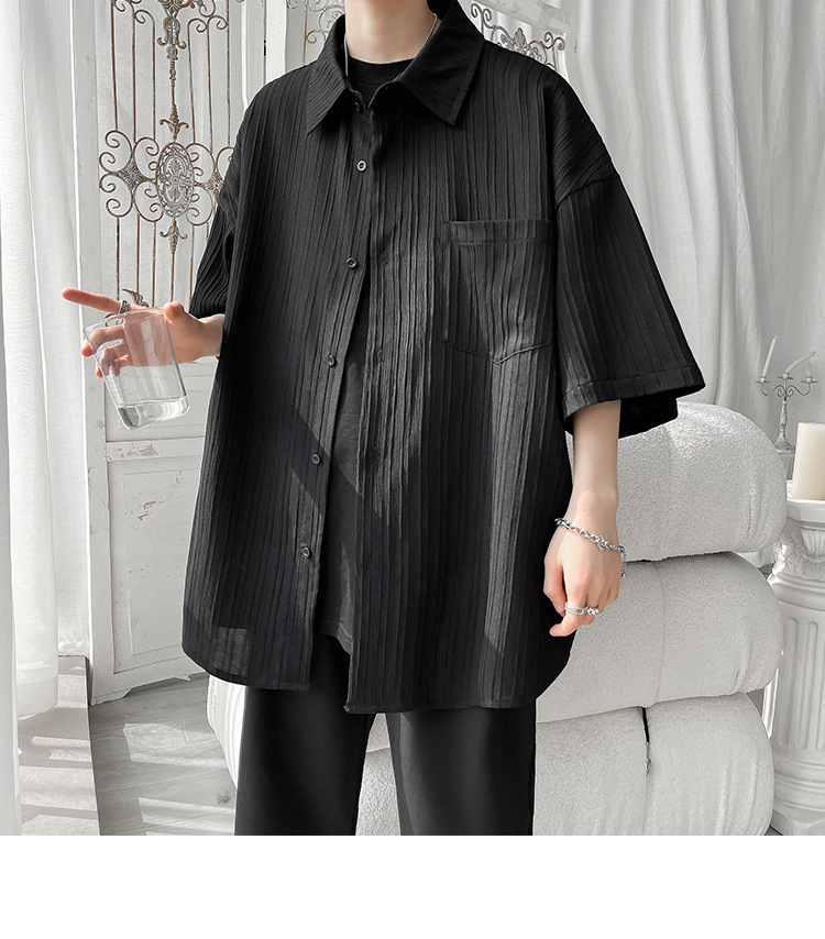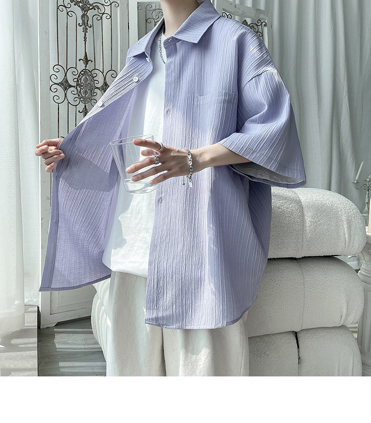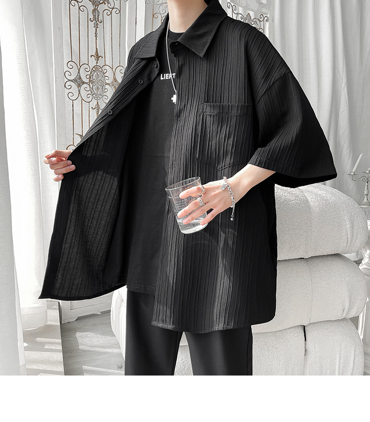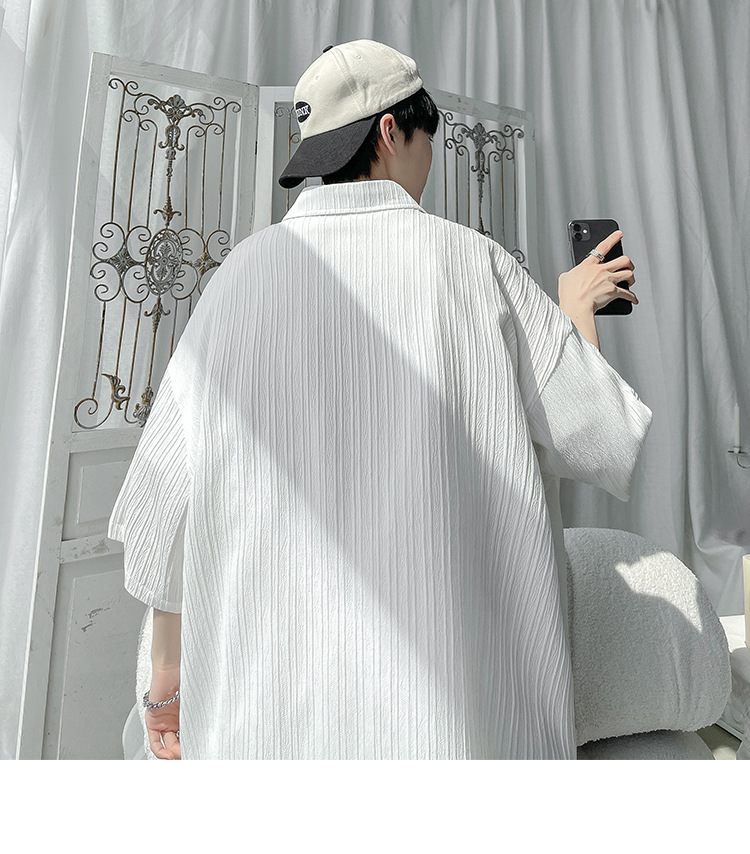 Mùa hè 2023 hợp thời trang áo sơ mi nam rời mỏng phần thoáng mát áo sơ mi ngắn tay khoác lên kẻ lưu manh đẹp trai Top Cardigan