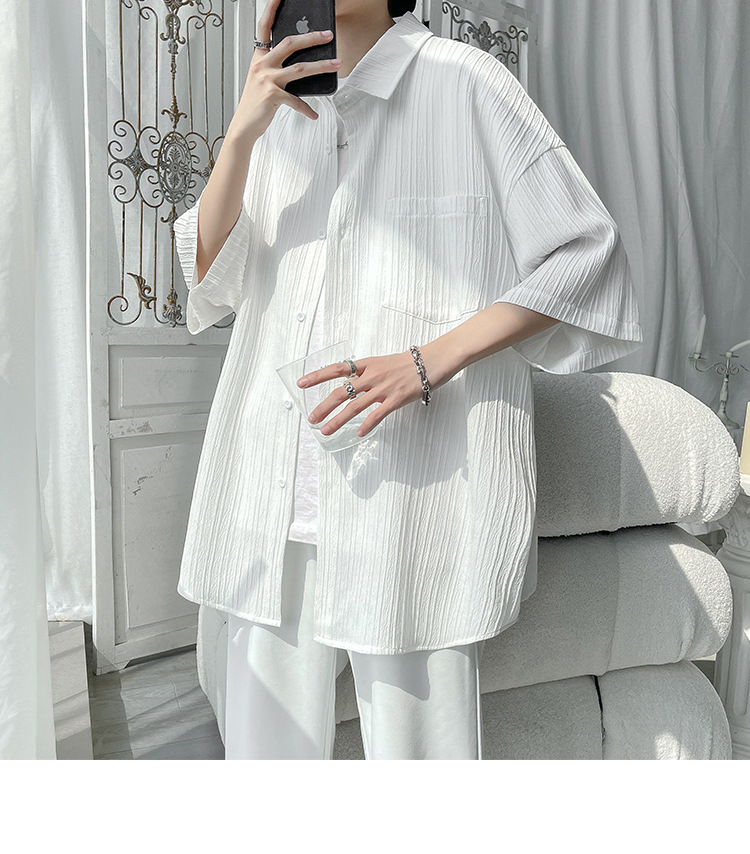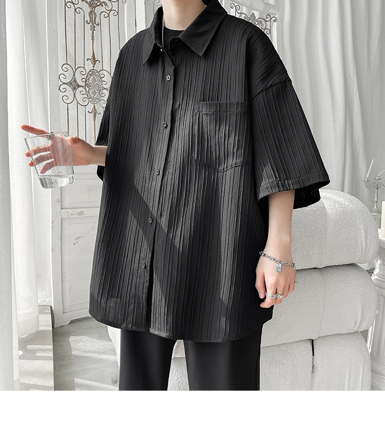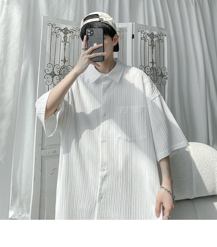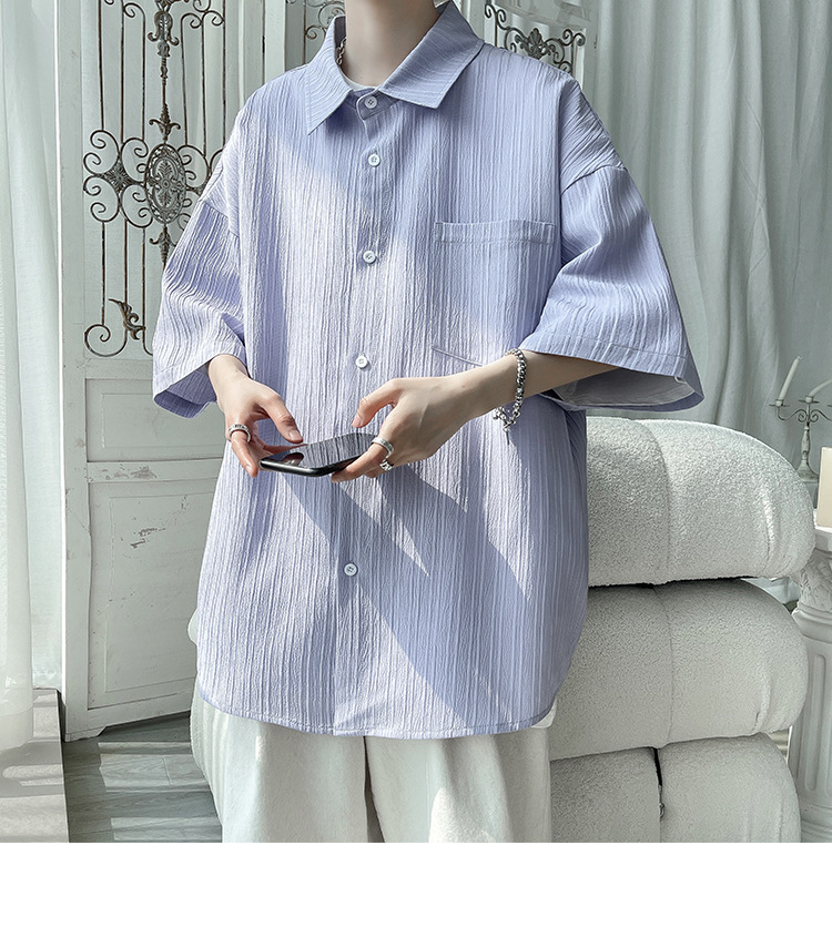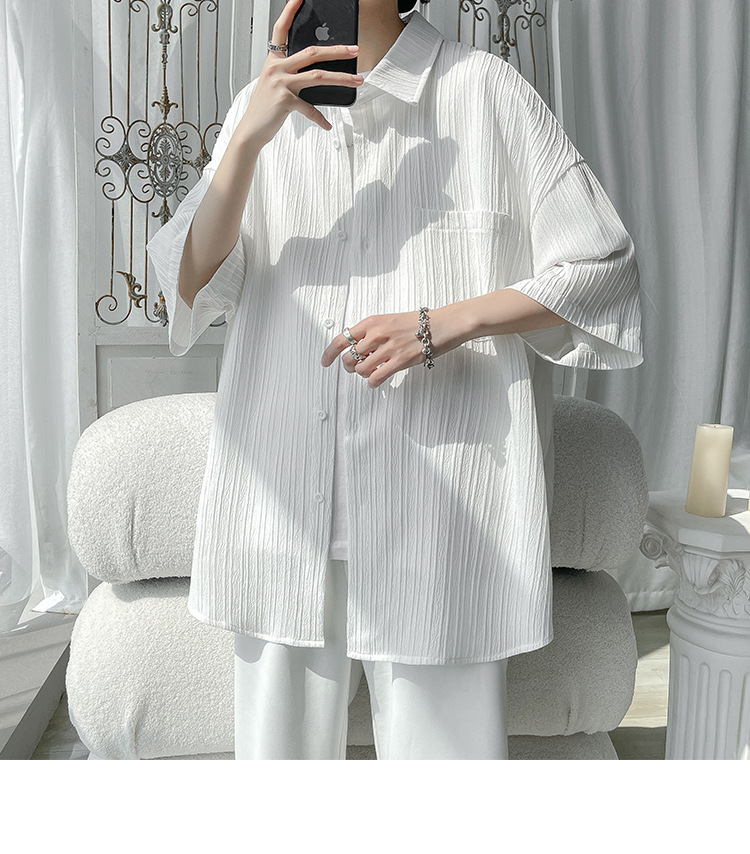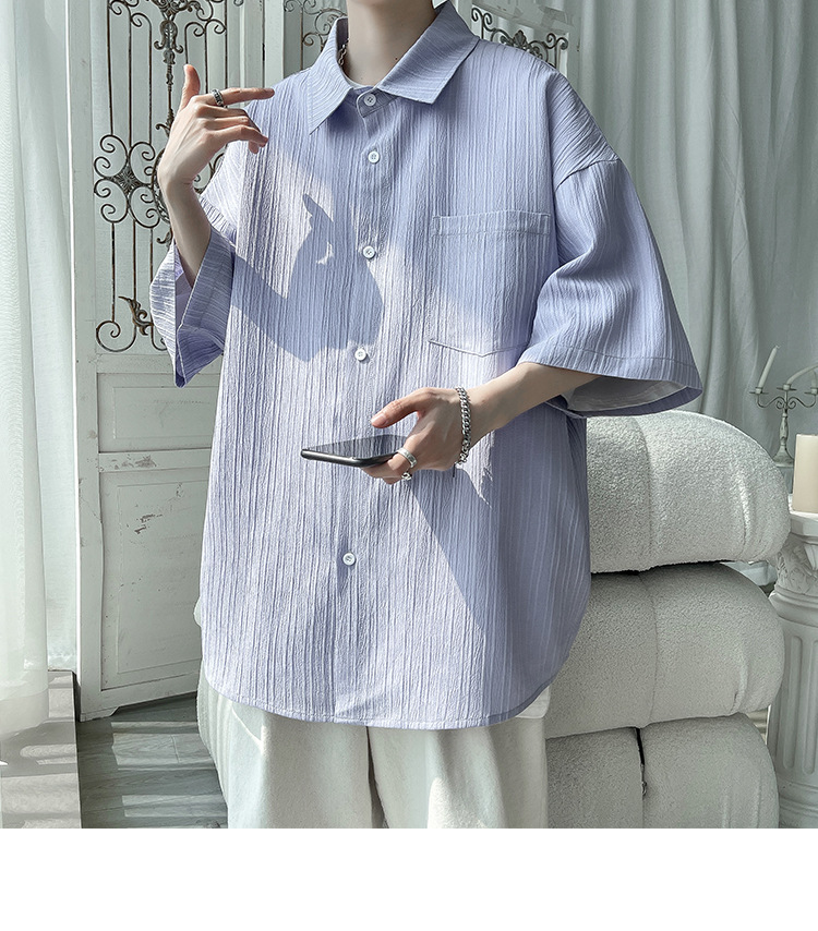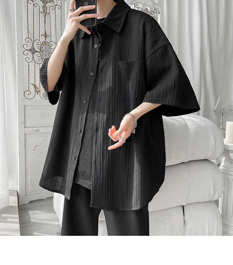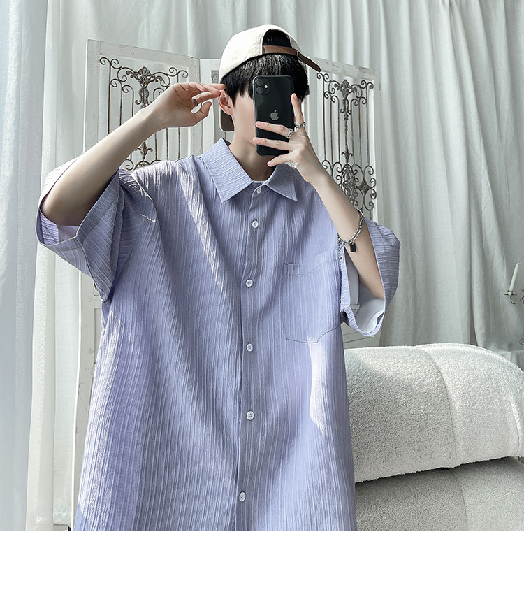 Mùa hè 2023 hợp thời trang áo sơ mi nam rời mỏng phần thoáng mát áo sơ mi ngắn tay khoác lên kẻ lưu manh đẹp trai Top Cardigan