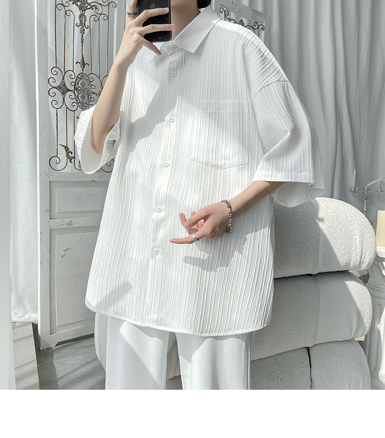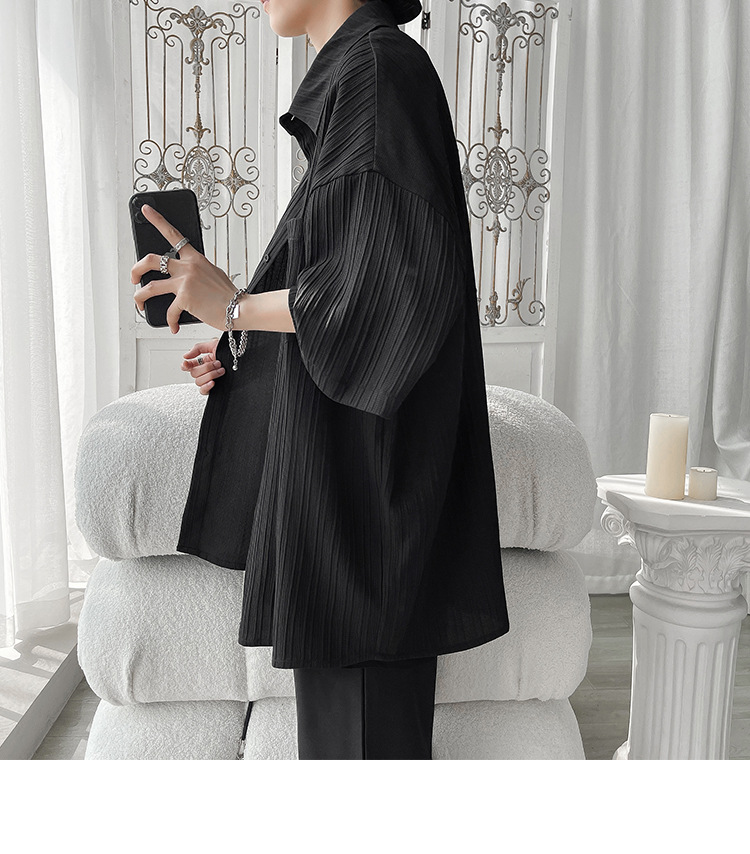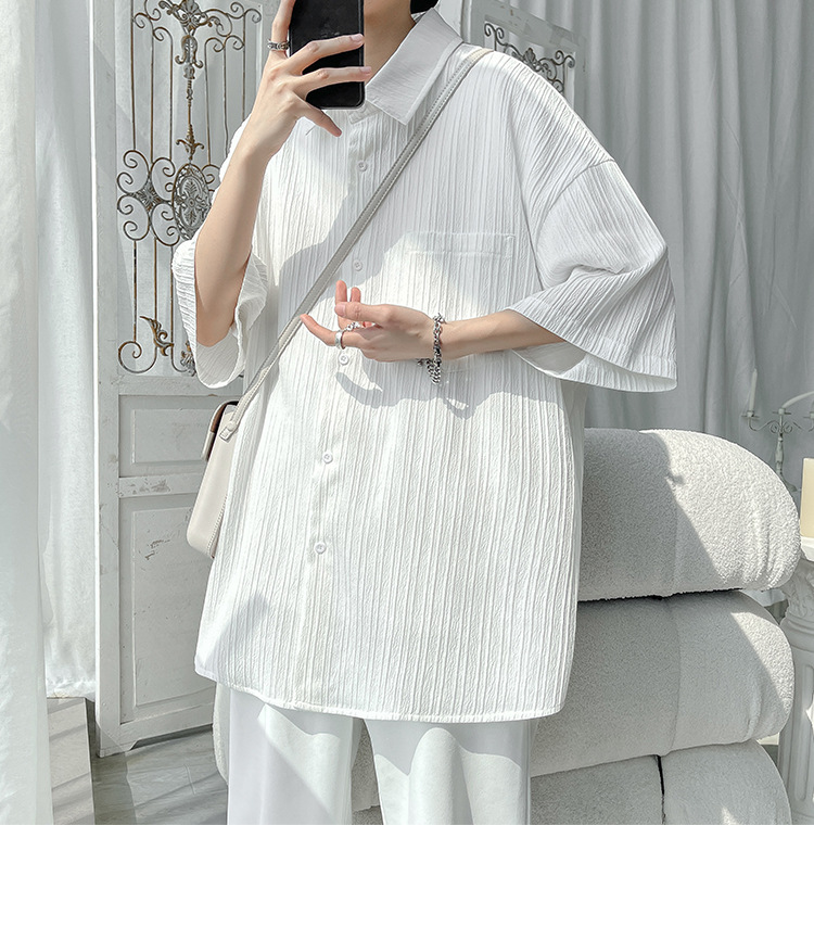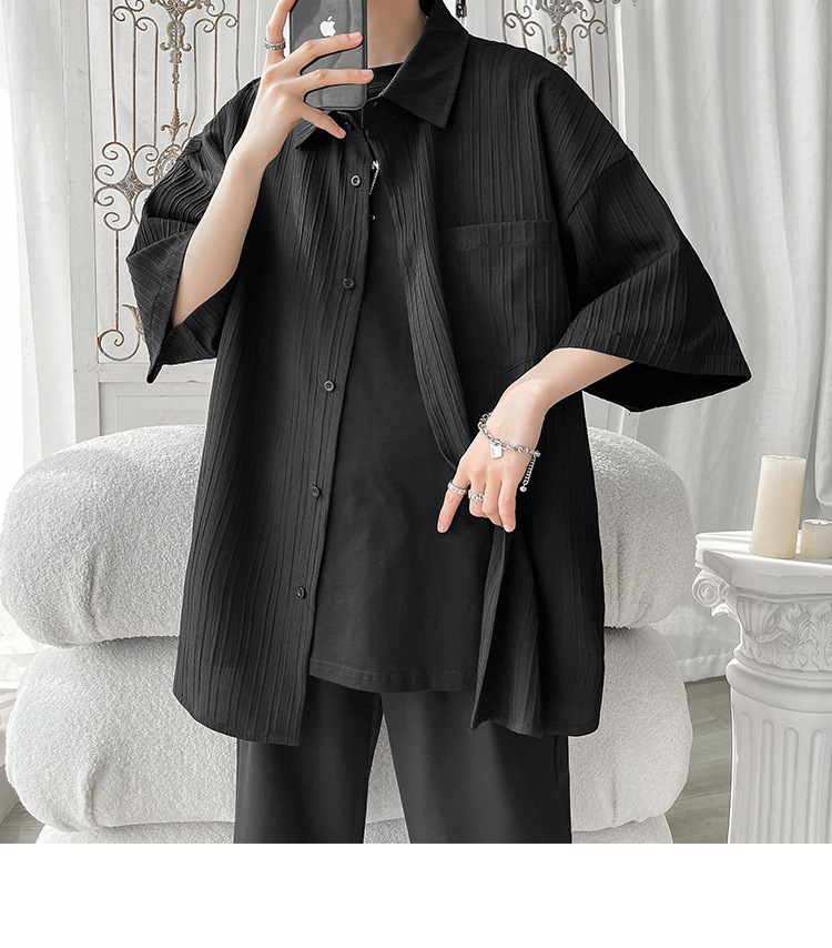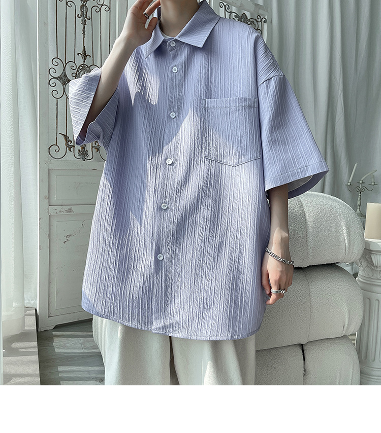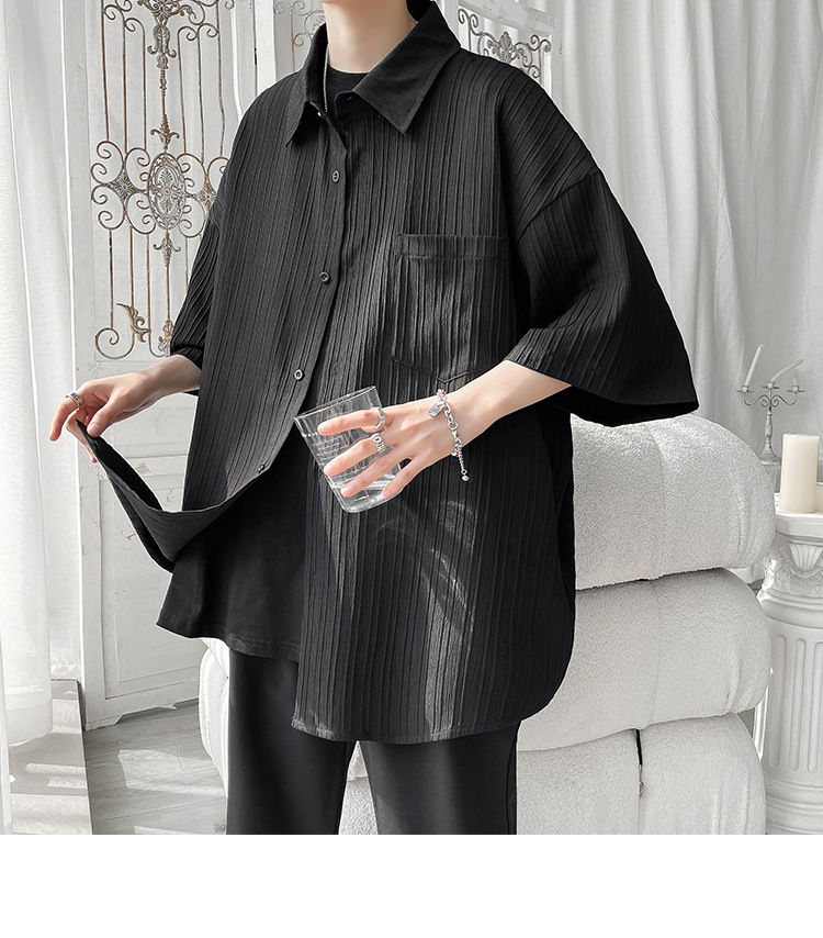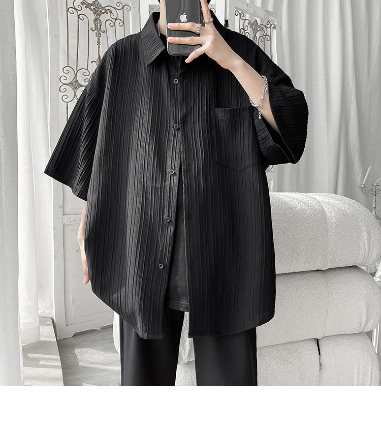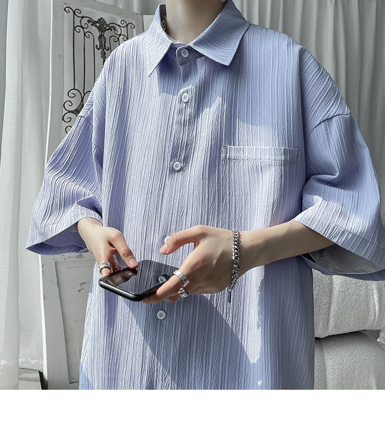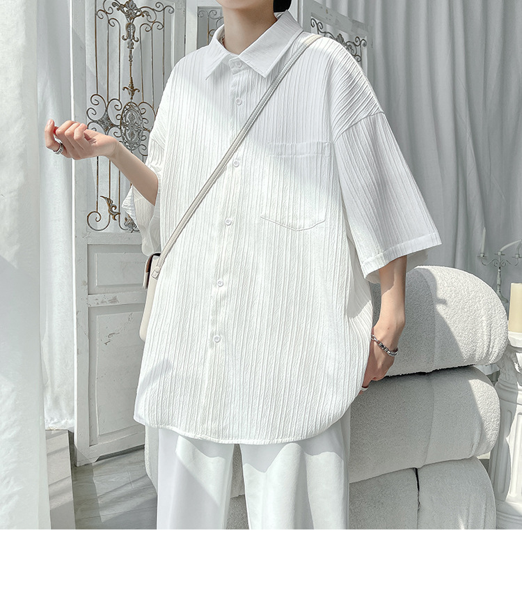 Mùa hè 2023 hợp thời trang áo sơ mi nam rời mỏng phần thoáng mát áo sơ mi ngắn tay khoác lên kẻ lưu manh đẹp trai Top Cardigan