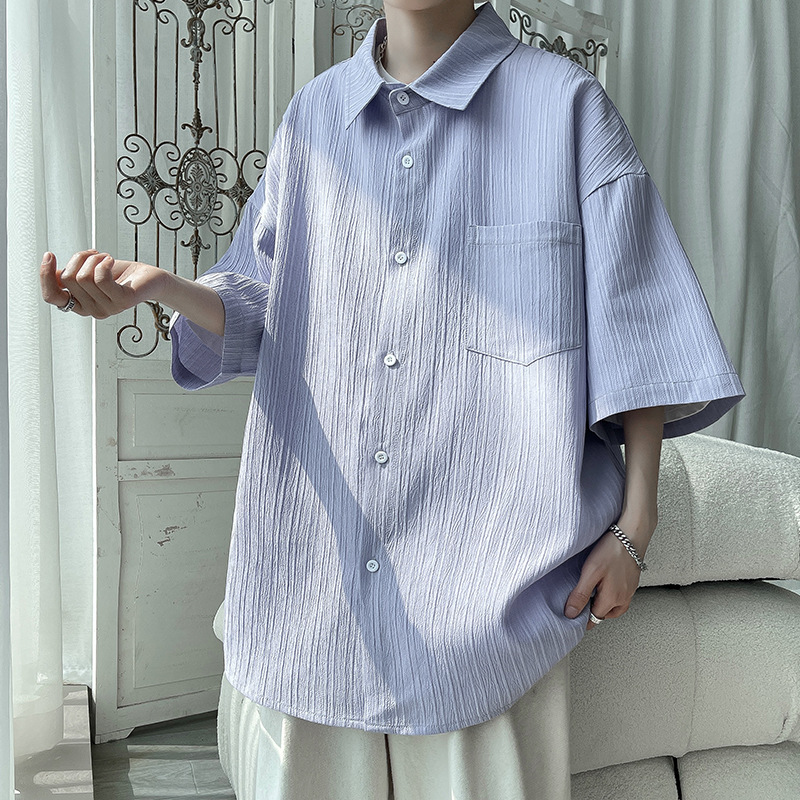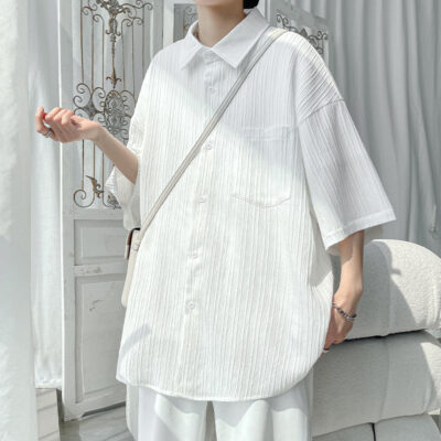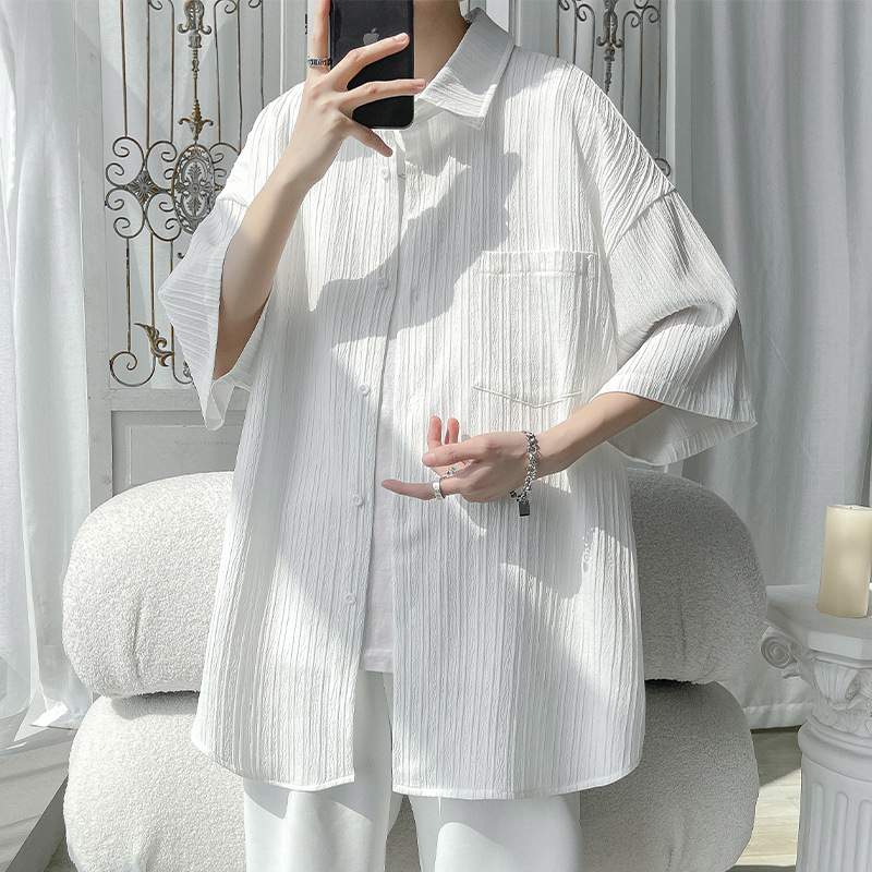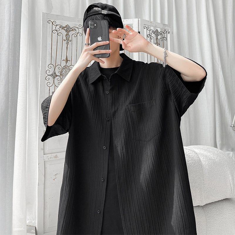 Mùa hè 2023 hợp thời trang áo sơ mi nam rời mỏng phần thoáng mát áo sơ mi ngắn tay khoác lên kẻ lưu manh đẹp trai Top Cardigan