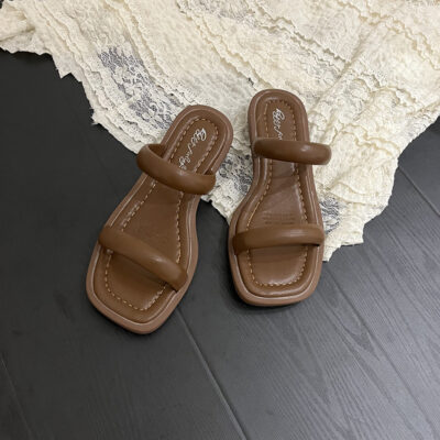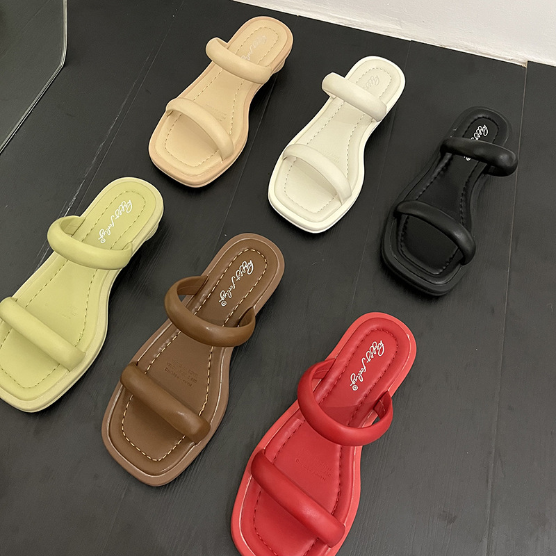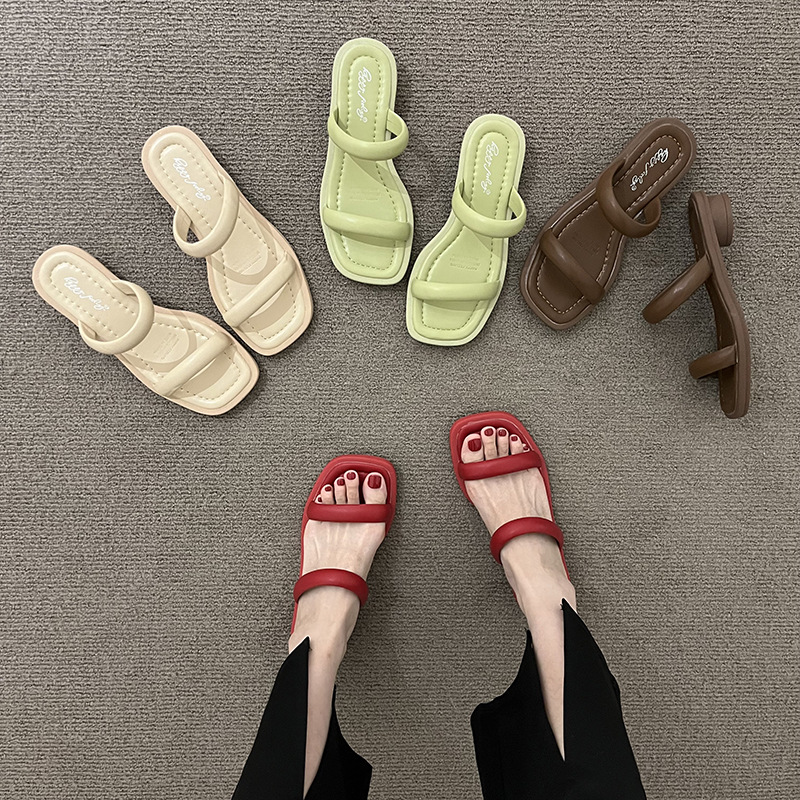 Mùa hè 2023 thời trang phong cách hàn quốc mới hở mũi khí chất một từ với dép bánh mì gót dày dép xăng đan gót thấp mặc bên ngoài cho nữ