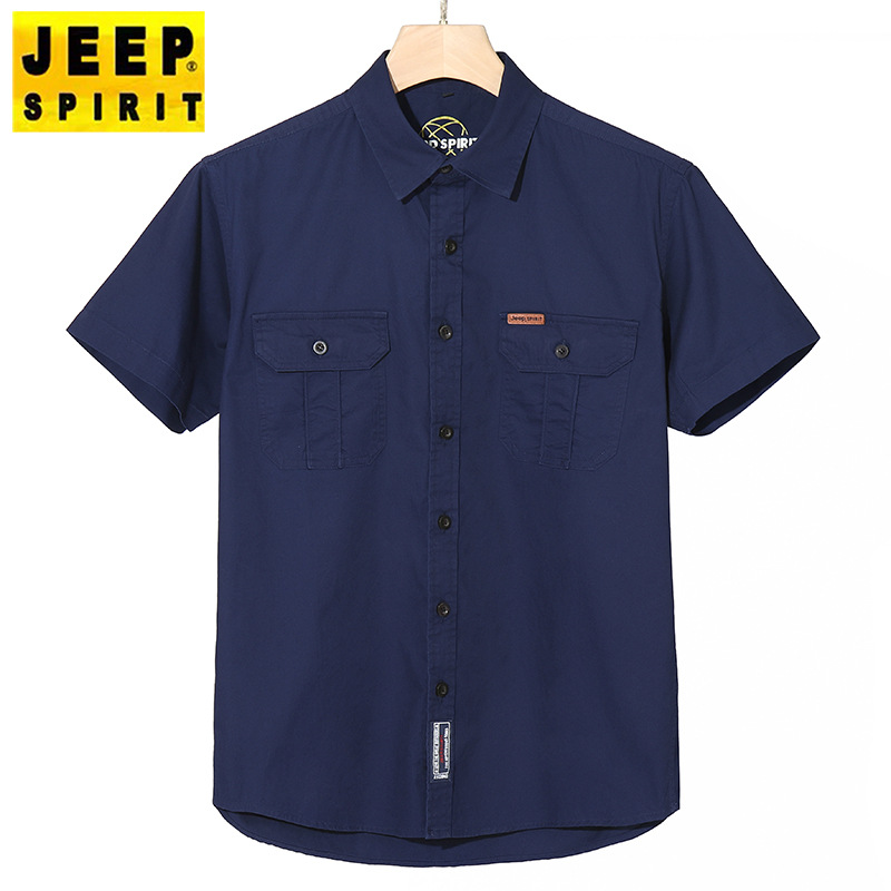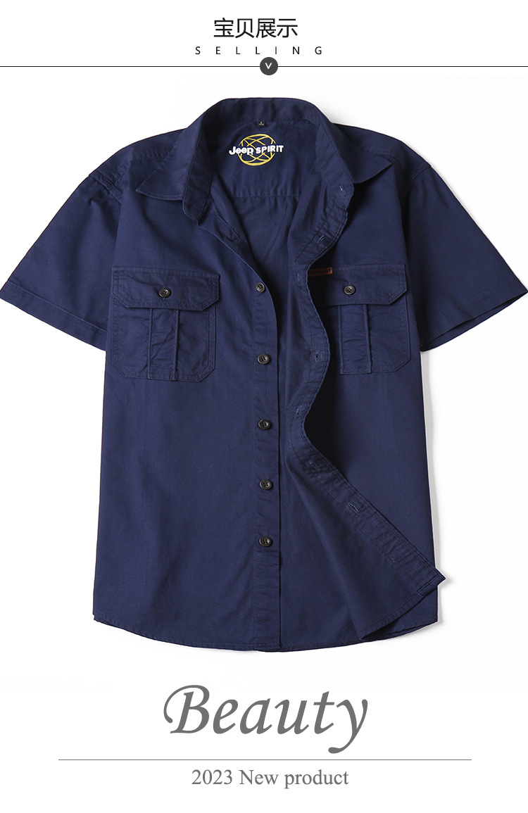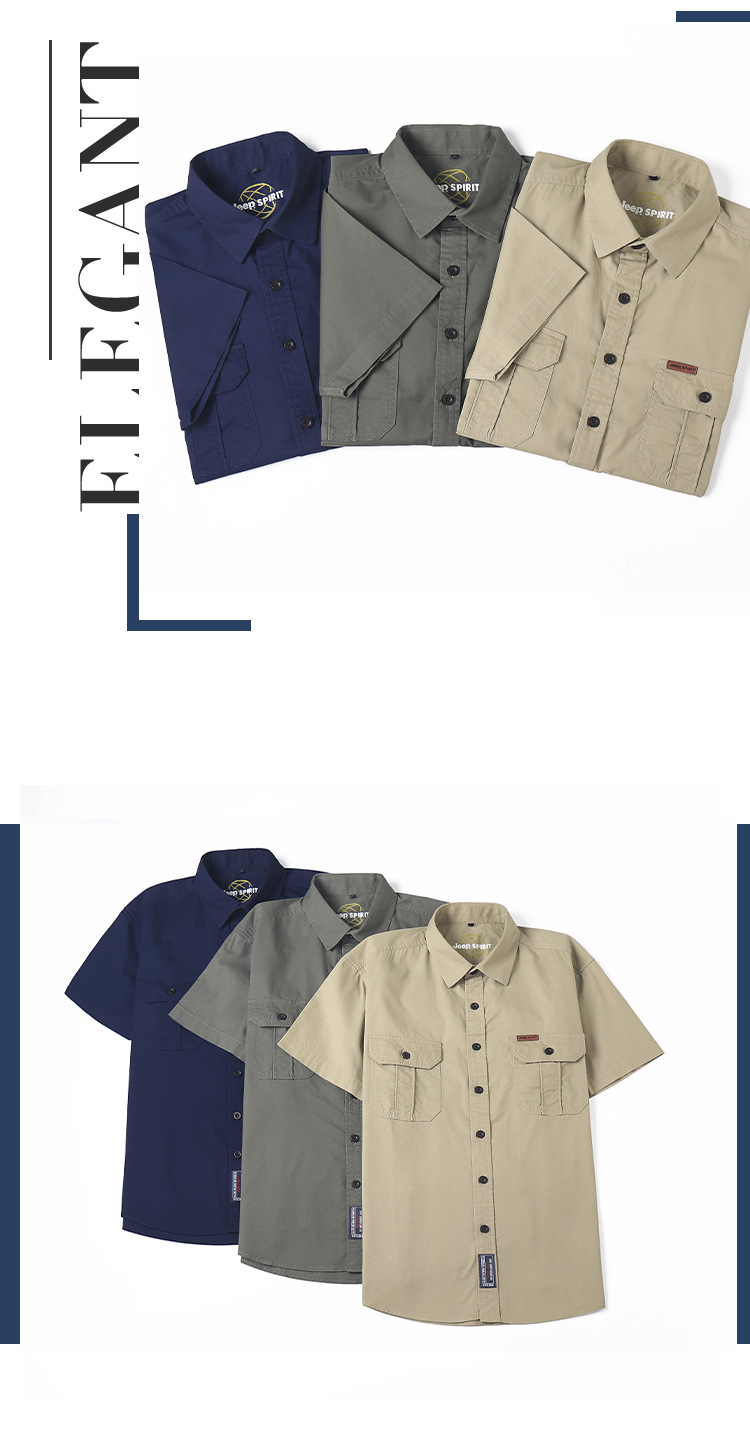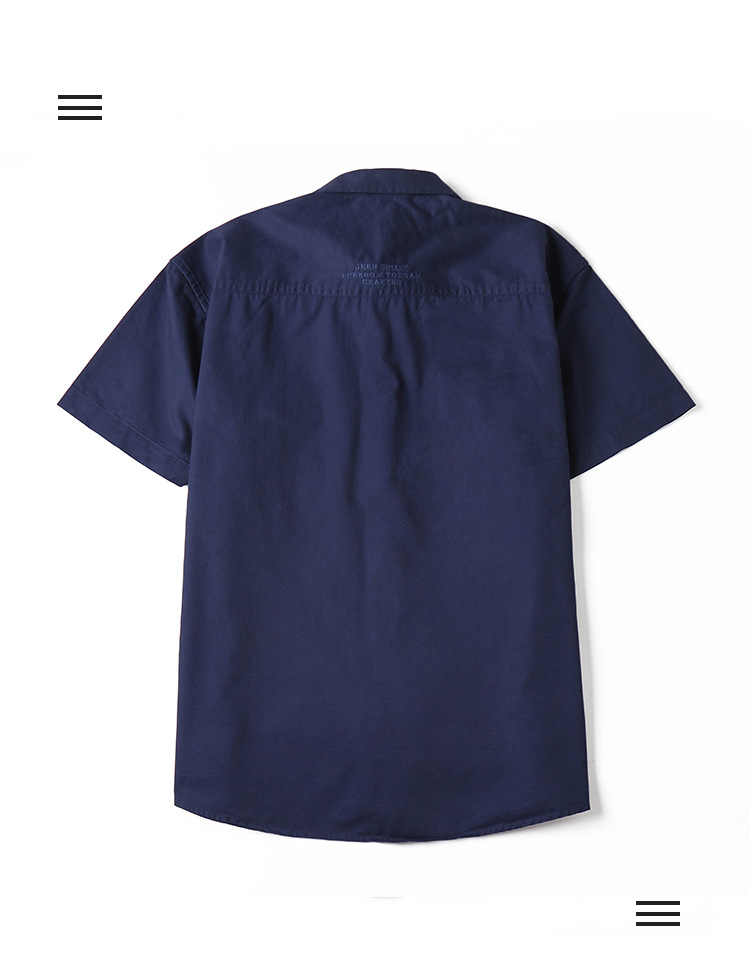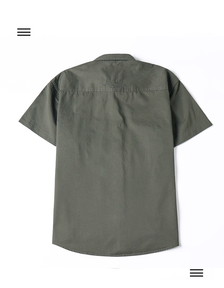 Mùa Hè Áo Sơ Mi Nam Ngắn Tay Cotton Nguyên Chất Xanh Rời Cổ Cho Đồng Màu Thanh Niên Ve Áo Sơ Mi Thời Trang 2046