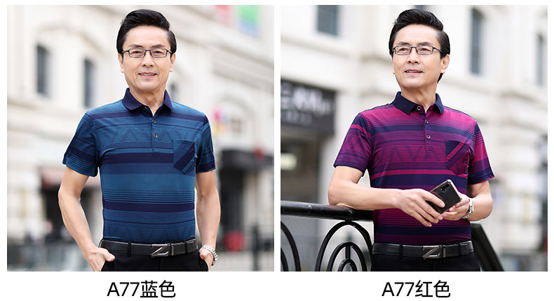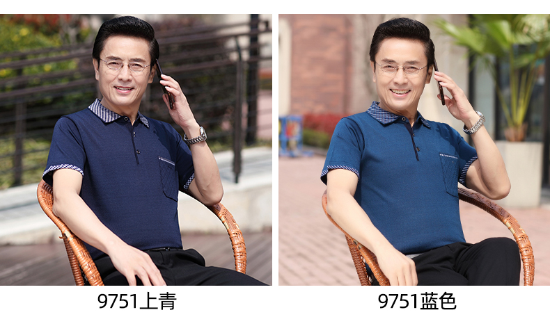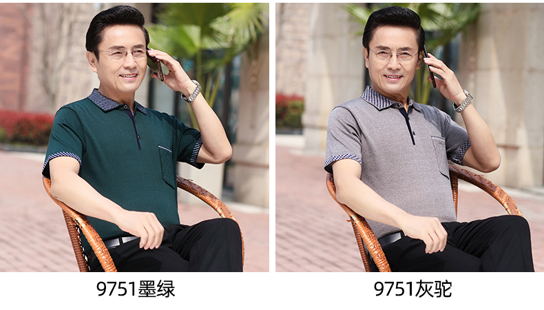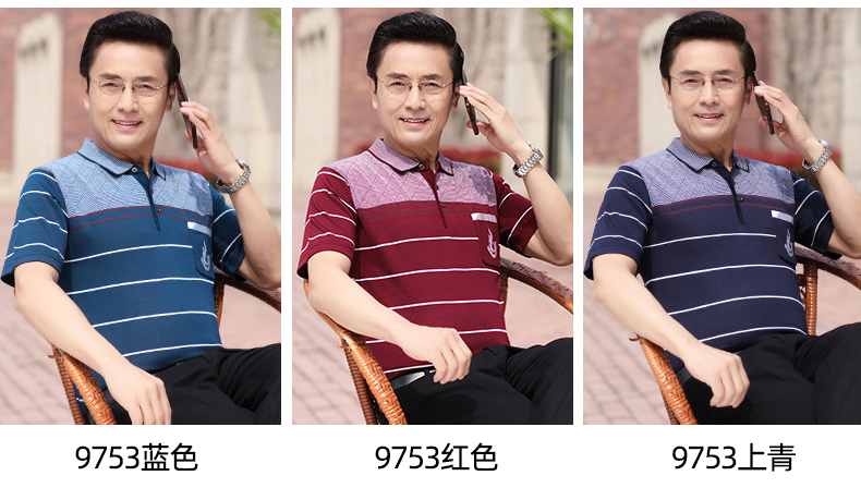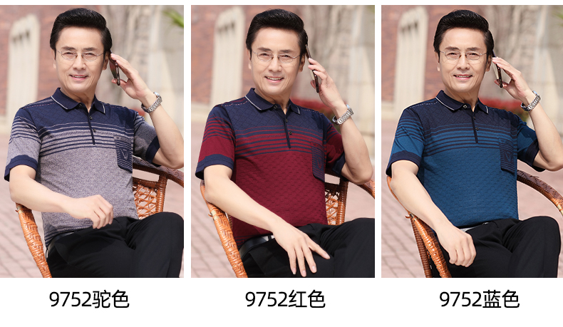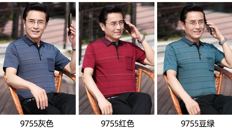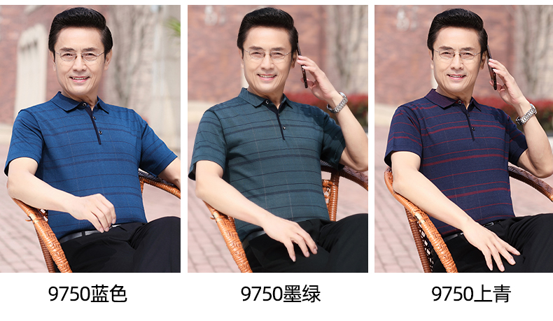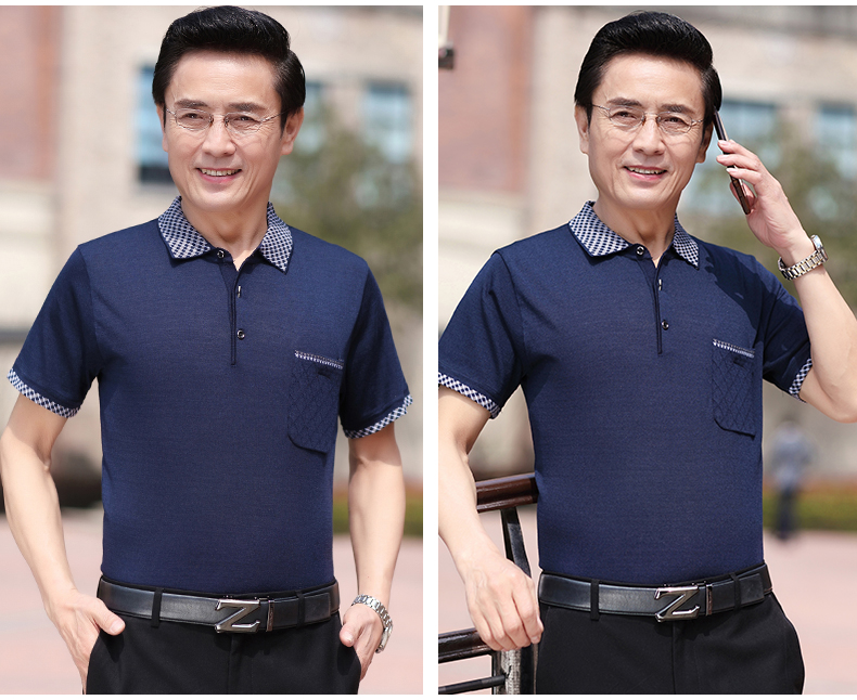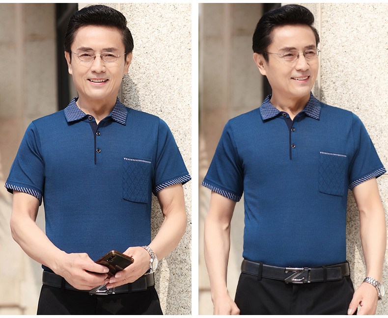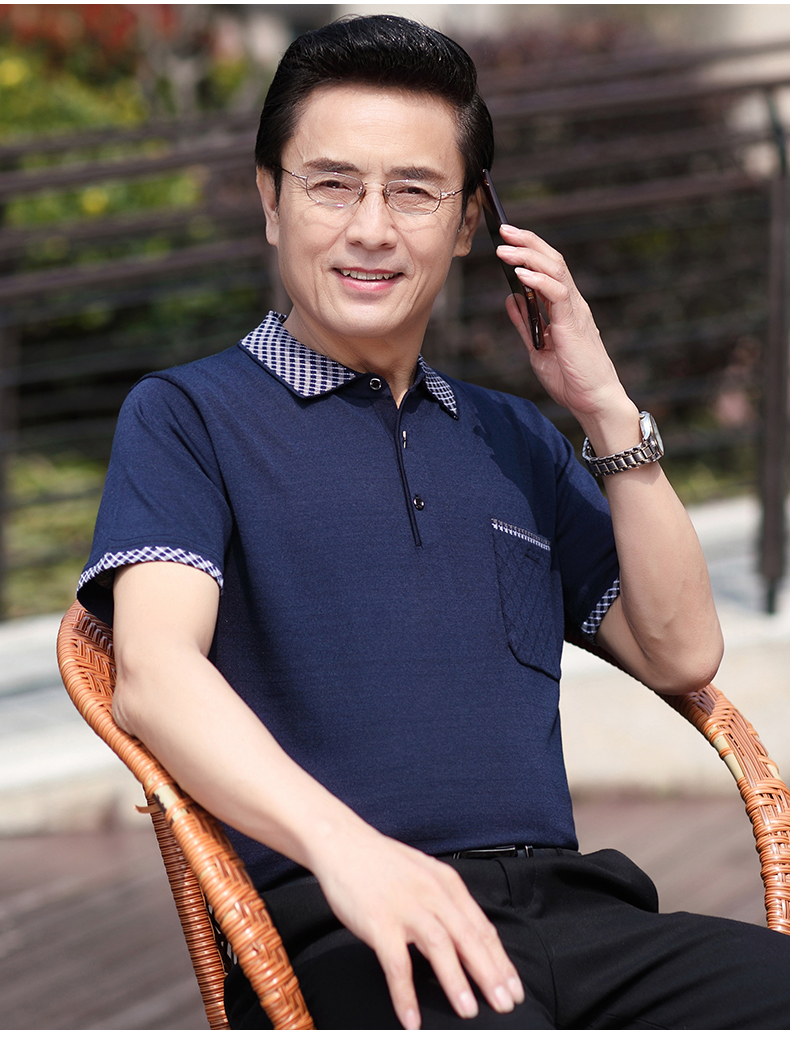 Mùa hè băng lụa nam giới trung niên áo thun ngắn tay bố quần áo mùa hè áo thun polo nam giới trung niên và cao tuổi áo sơ mi của người đàn ông già