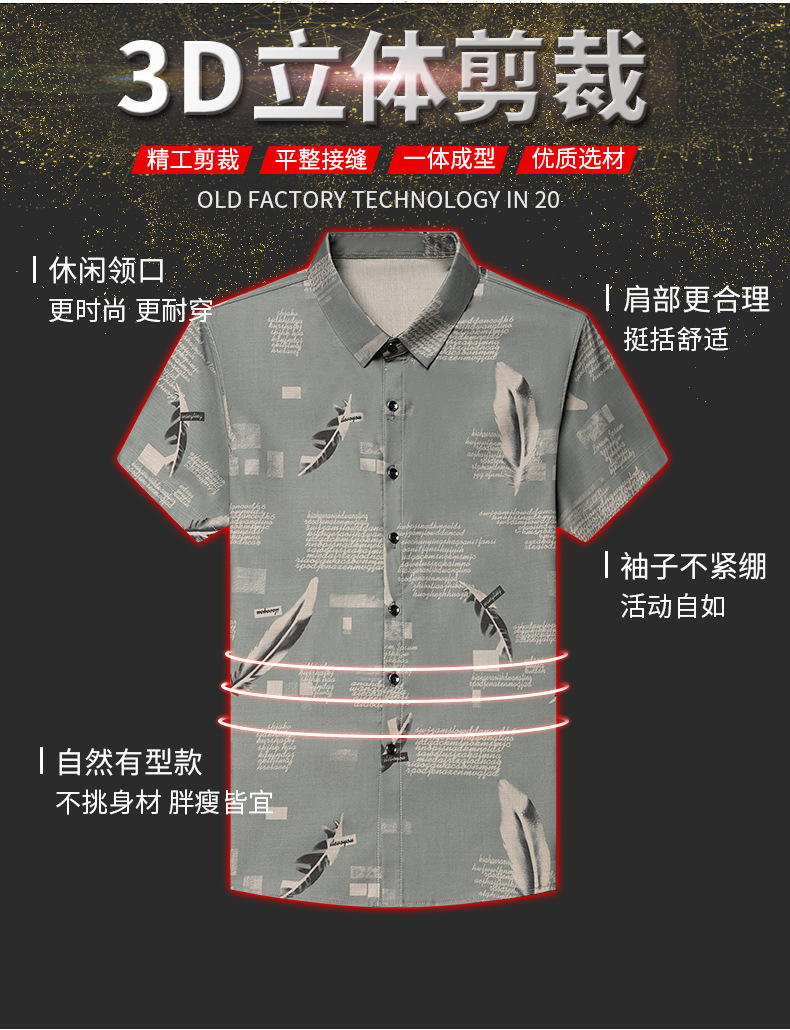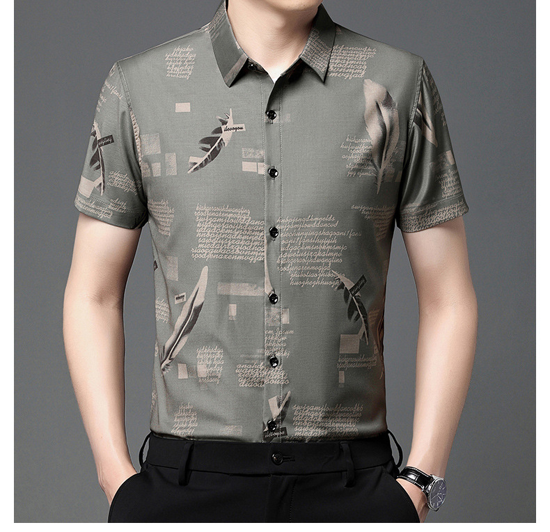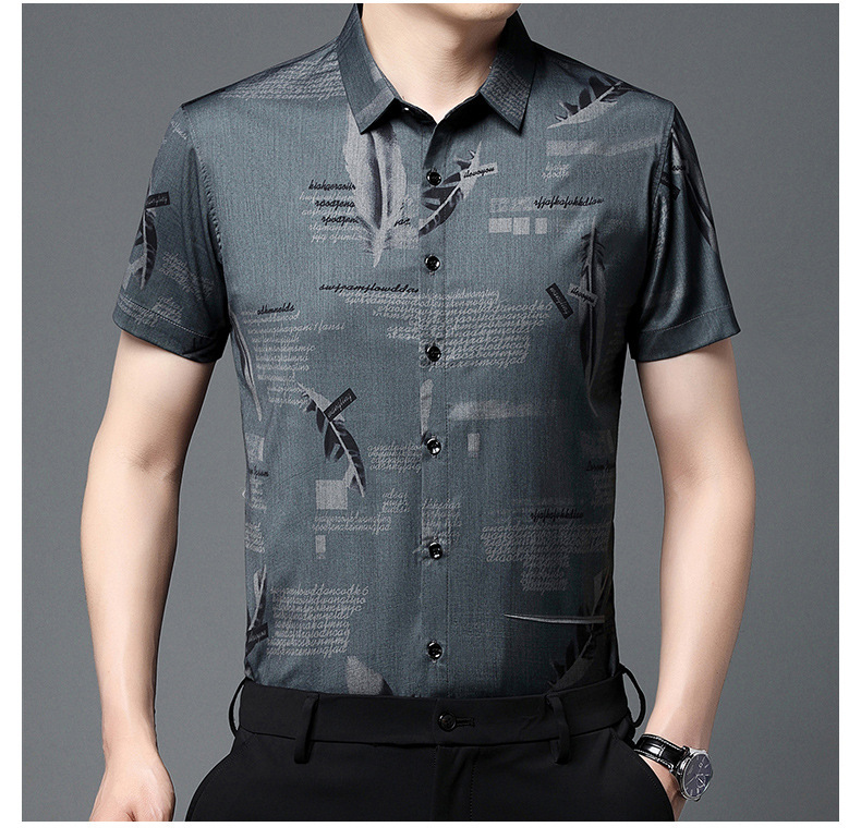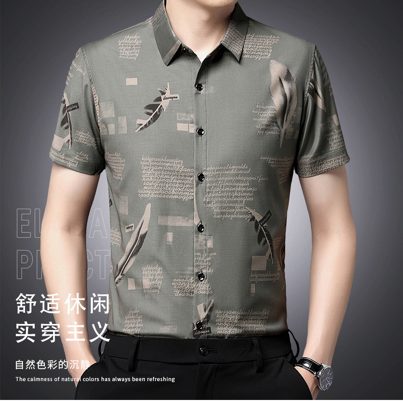 Mùa hè băng lụa ngắn tay áo sơ mi công sở nam trung niên và thanh niên áo sơ mi công sở không ủi chống nhăn trang phục chính thức cha top nam