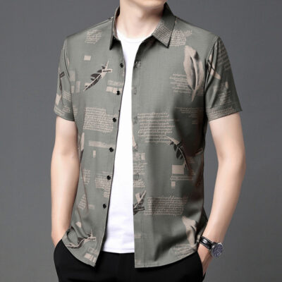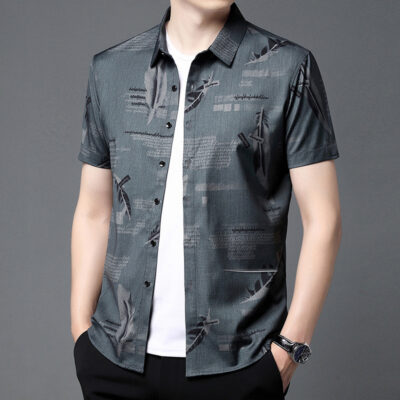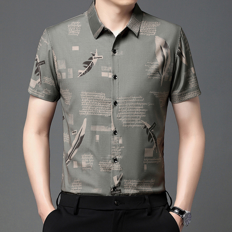 Mùa hè băng lụa ngắn tay áo sơ mi công sở nam trung niên và thanh niên áo sơ mi công sở không ủi chống nhăn trang phục chính thức cha top nam