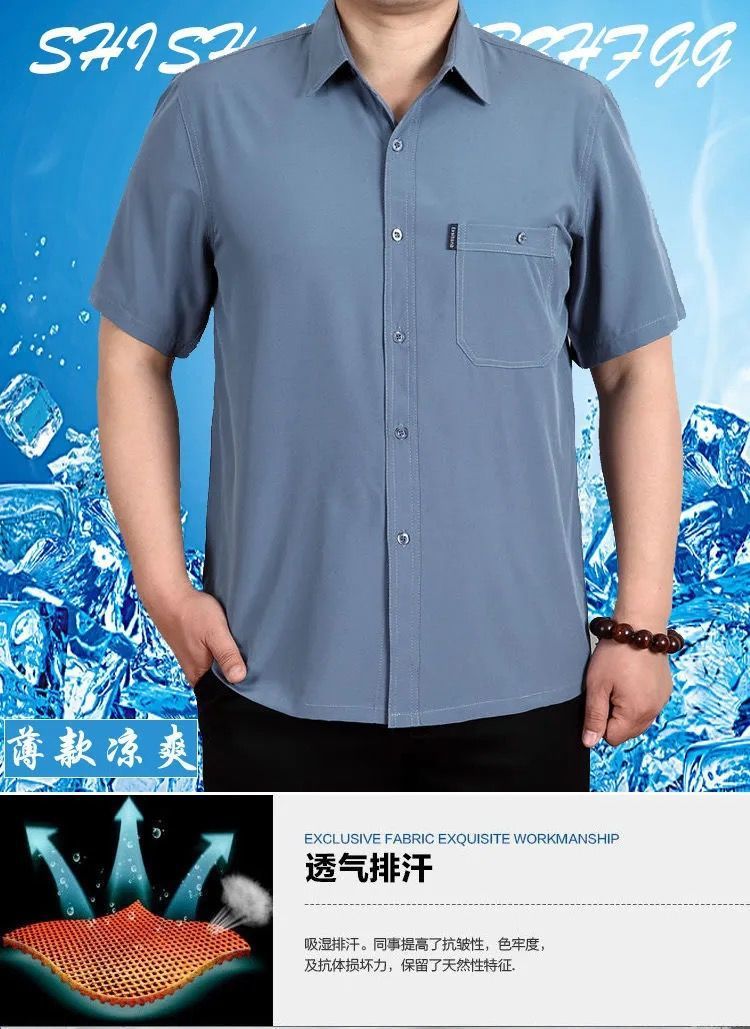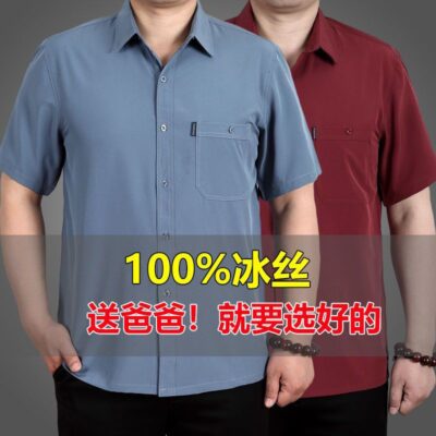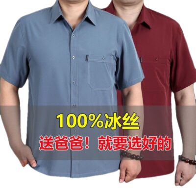Mùa hè chất béo cộng với lỏng lẻo cho người trung niên và người già băng lụa mỏng phần áo sơ mi nam ngắn tay cha ông già áo sơ mi