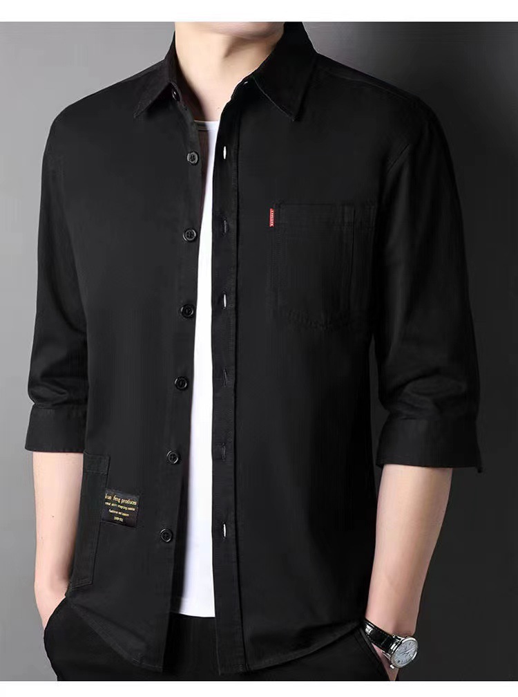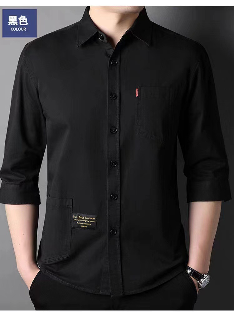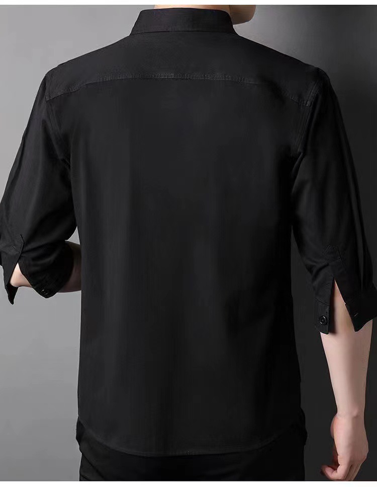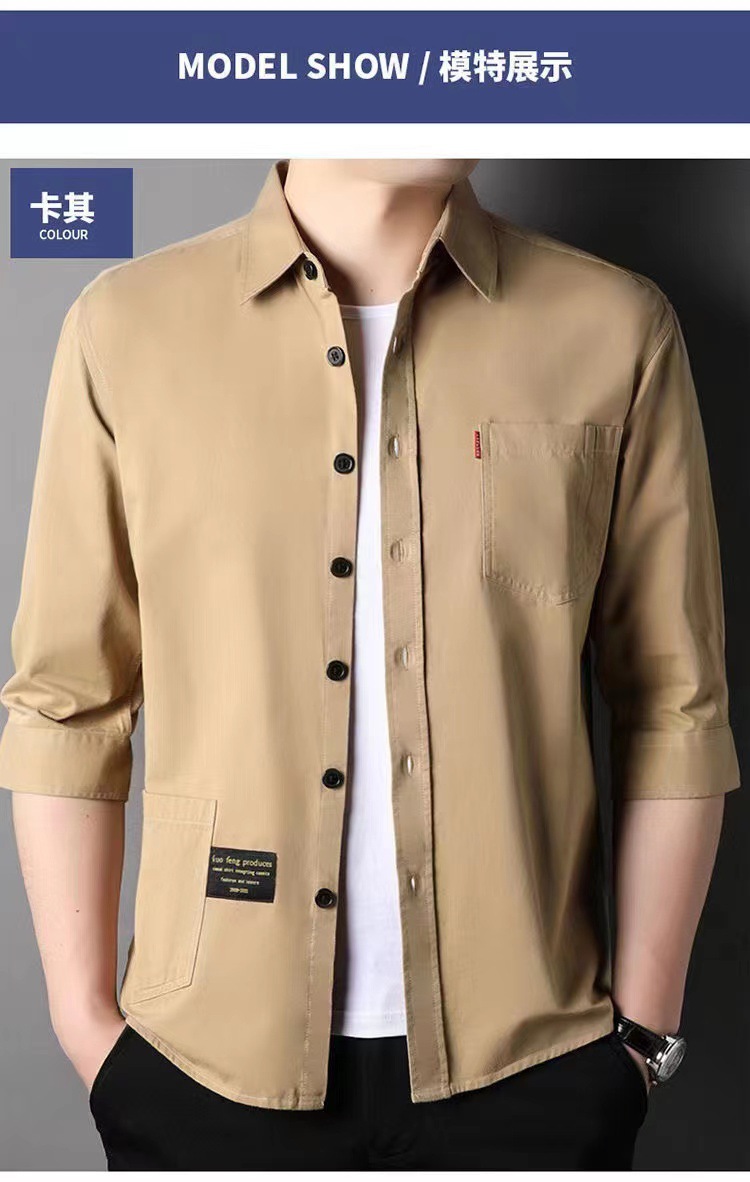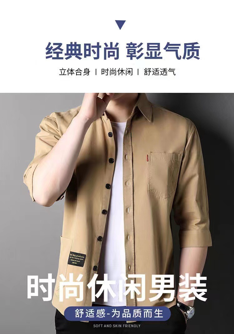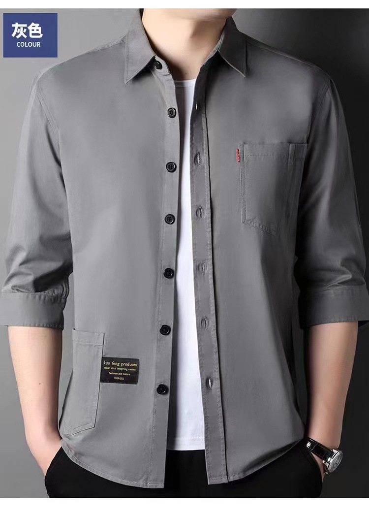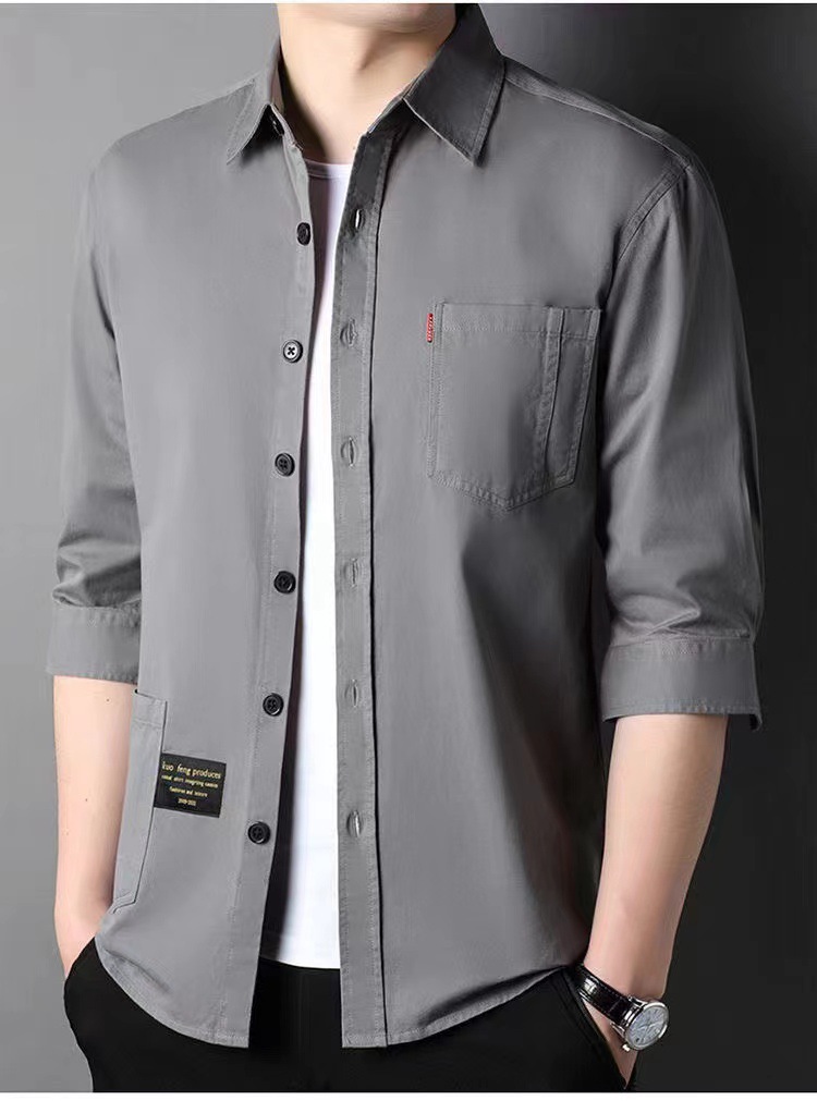 Mùa hè cotton nguyên chất tay ba phần tư áo sơ mi phong cách Hồng Kông nam sơ mi cotton mỏng phần dụng cụ áo khoác rời thời trang nam