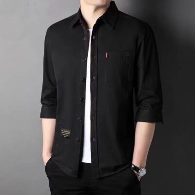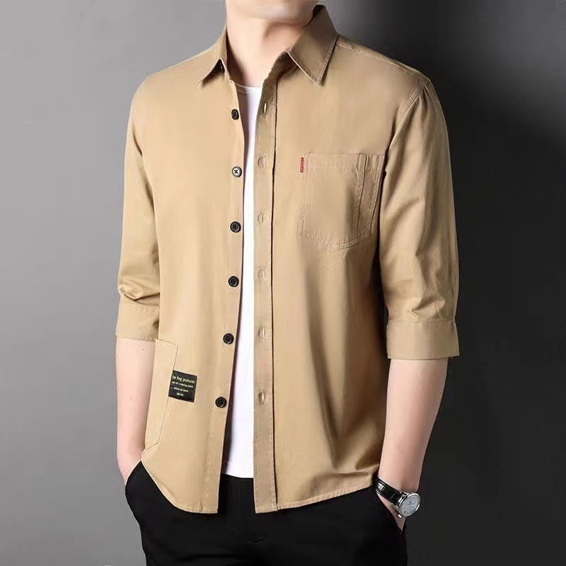Mùa hè cotton nguyên chất tay ba phần tư áo sơ mi phong cách Hồng Kông nam sơ mi cotton mỏng phần dụng cụ áo khoác rời thời trang nam
