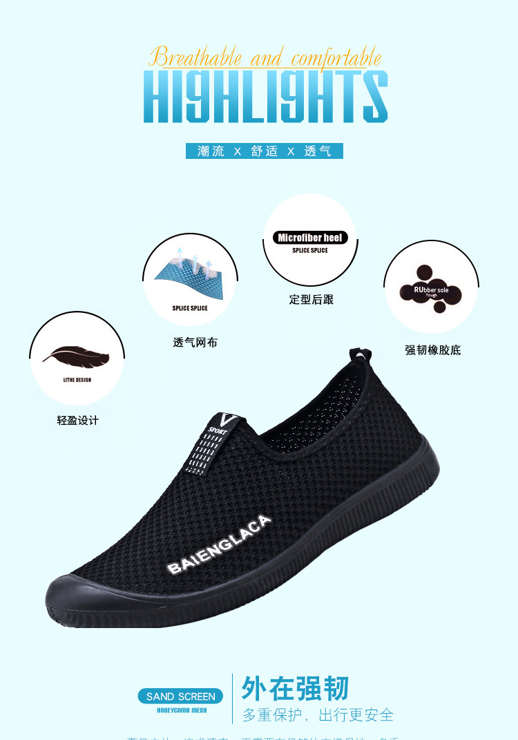 Mùa hè dành cho nam giới nhẹ nhàng, thoáng khí, thoáng khí Giày thể thao lười khử mùi Khử mùi Giày lười lưới thông thường Giày thể thao không lưới