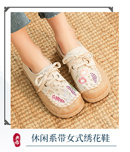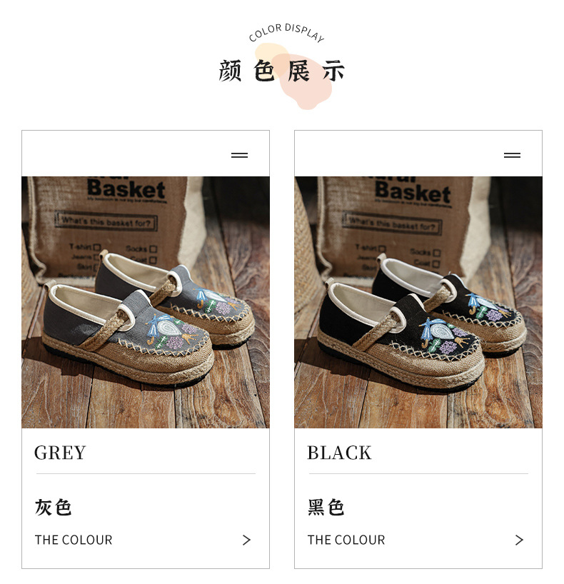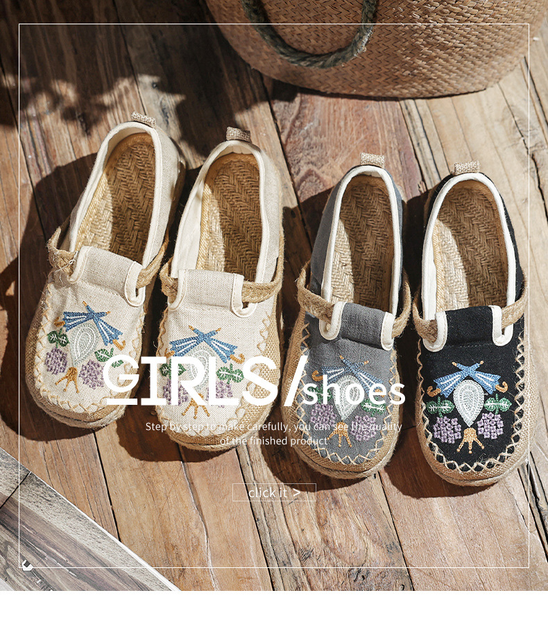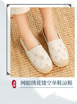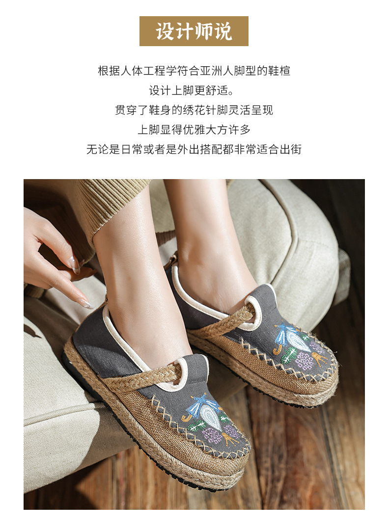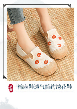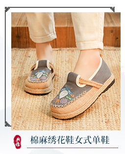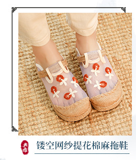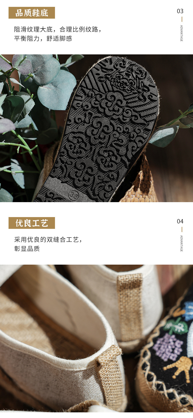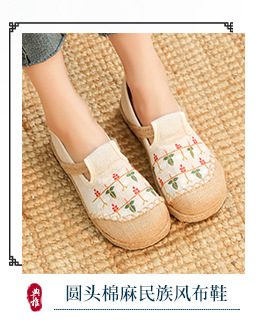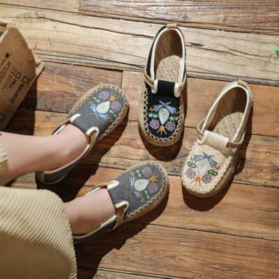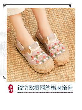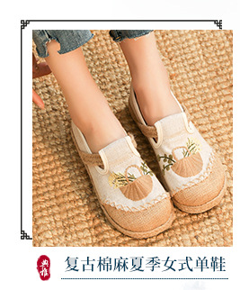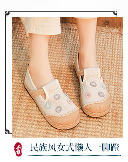 Mùa hè điểm mới phong cách dân tộc giày đơn nữ giày lười một bàn đạp mũi tròn đế dày cotton gai giày thêu giày nữ
