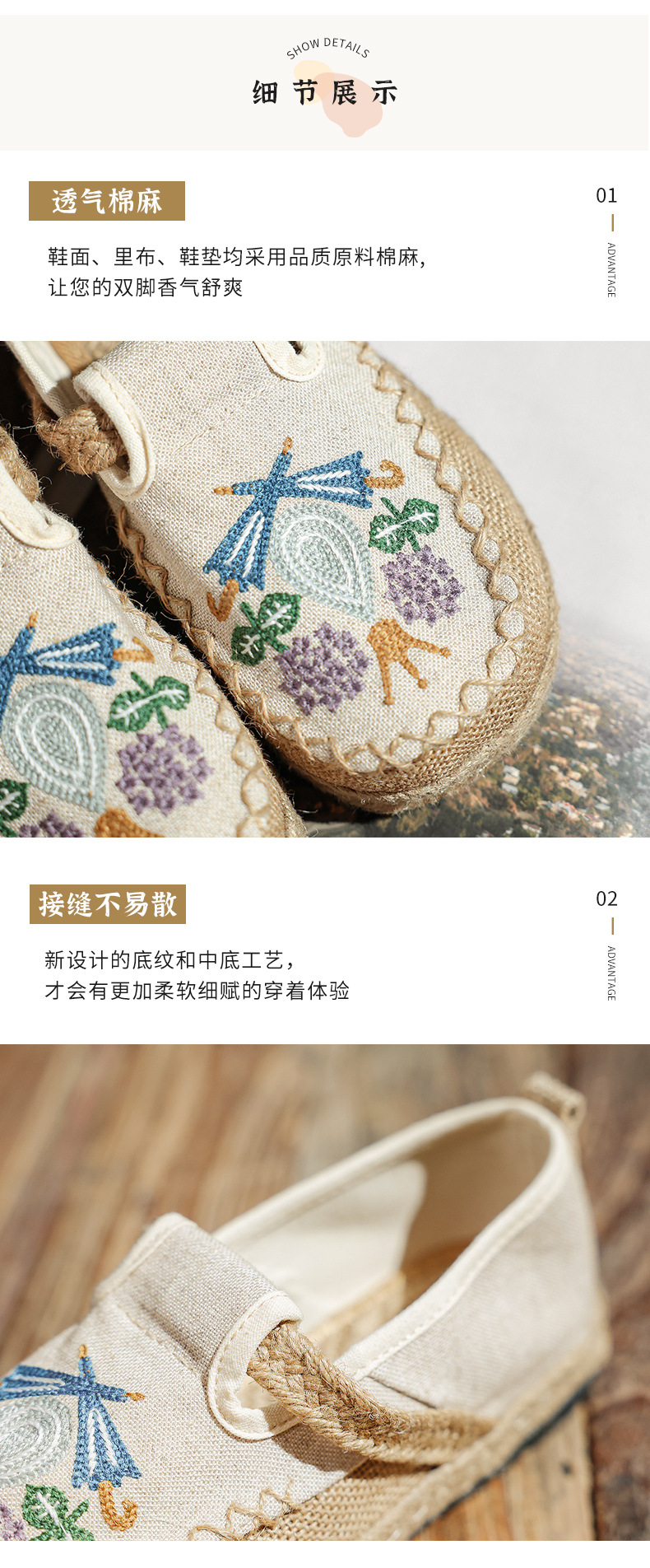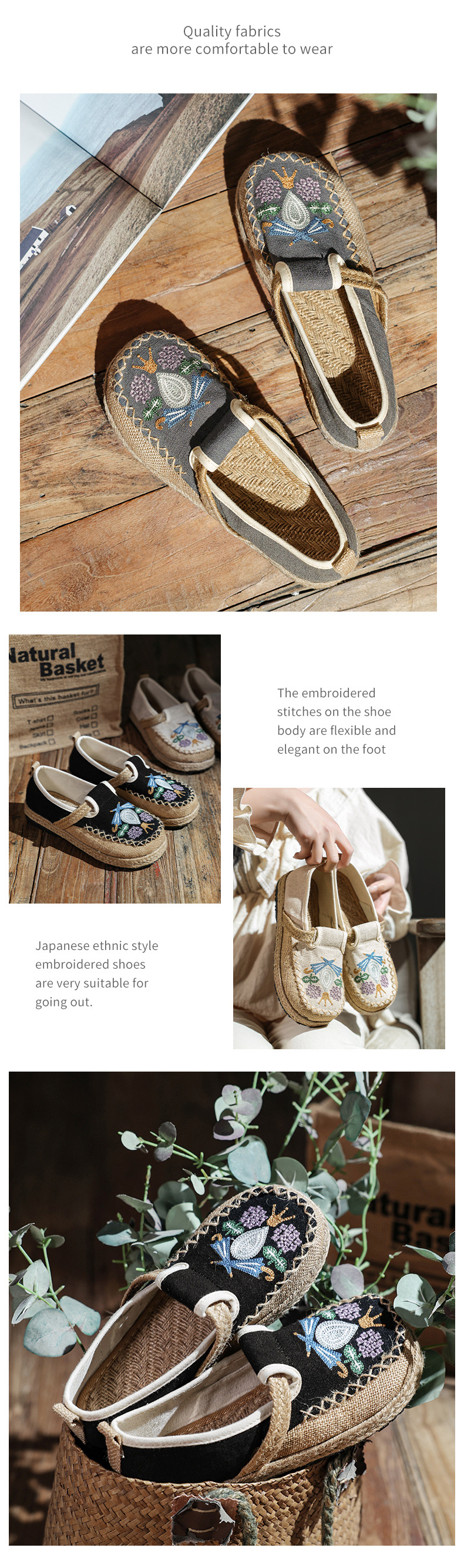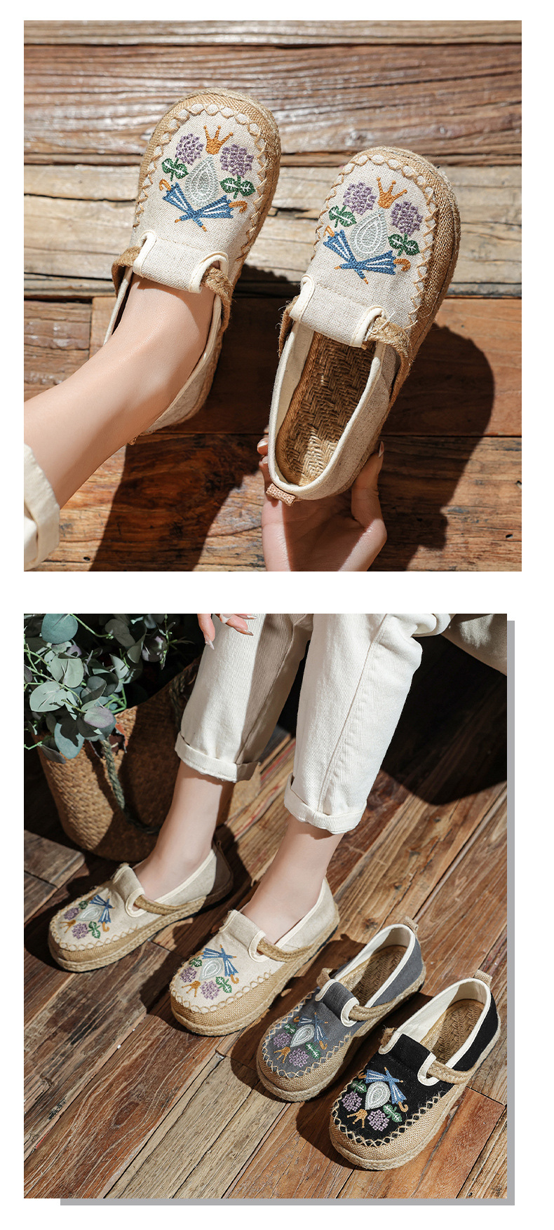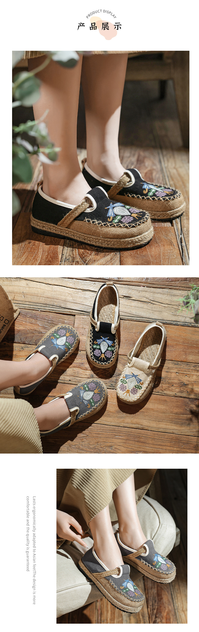 Mùa hè điểm mới phong cách dân tộc giày đơn nữ giày lười một bàn đạp mũi tròn đế dày cotton gai giày thêu giày nữ