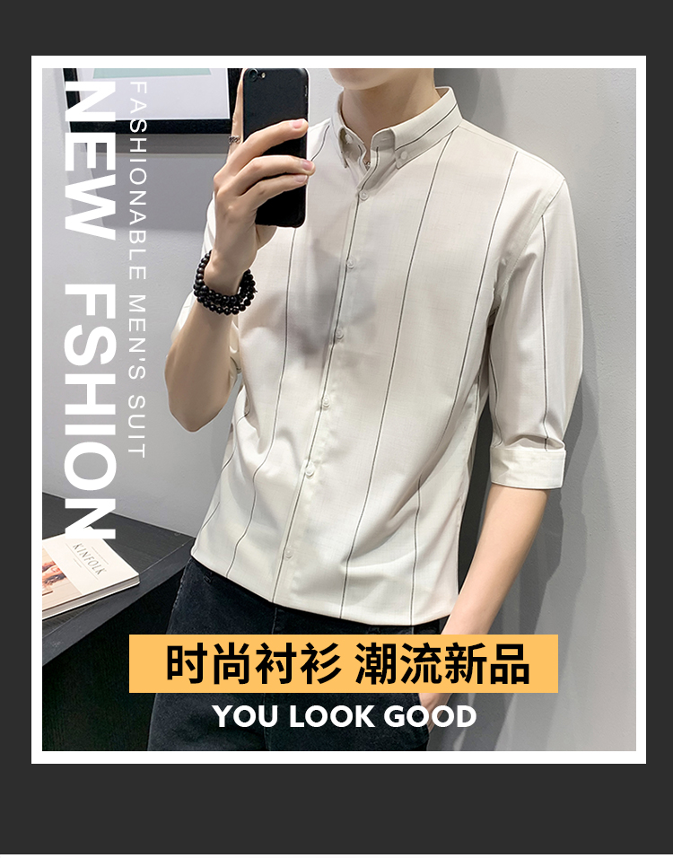 Mùa hè giản dị không-áo sơ mi nam mỏng tay ba phần tư tay ngắn tay năm điểm áo sơ mi nam công sở trung bình cao cấp
