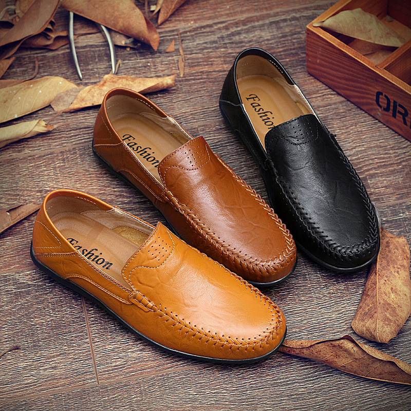 Mùa Hè Giày Da Nam Rỗng Thoáng Khí Hạt Đậu Da Thật Da Thật Size Lớn Đế Mềm Bố Giày Lười Trơn chất Lượng Cao