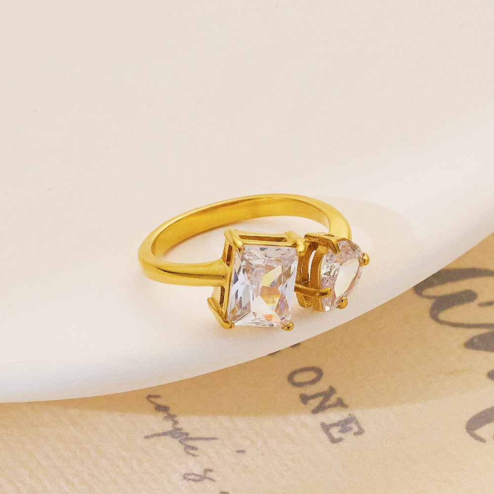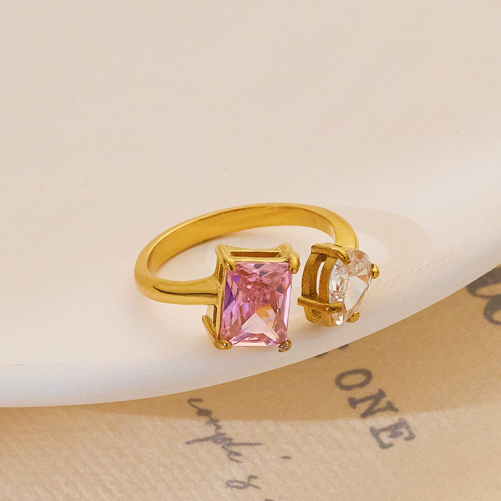 Mùa hè INS phong cách Pháp retro nhẫn đính đá Zircon thời trang nữ có thể điều chỉnh màu kim cương mở nhẫn ins phong cách thích hợp