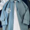 Mùa hè khâu túi áo sơ mi ngắn tay nam màu xanh nước biển bên ngoài áo sơ mi mỏng bên ngoài áo thun nam mùa hè cỡ lớn ve áo