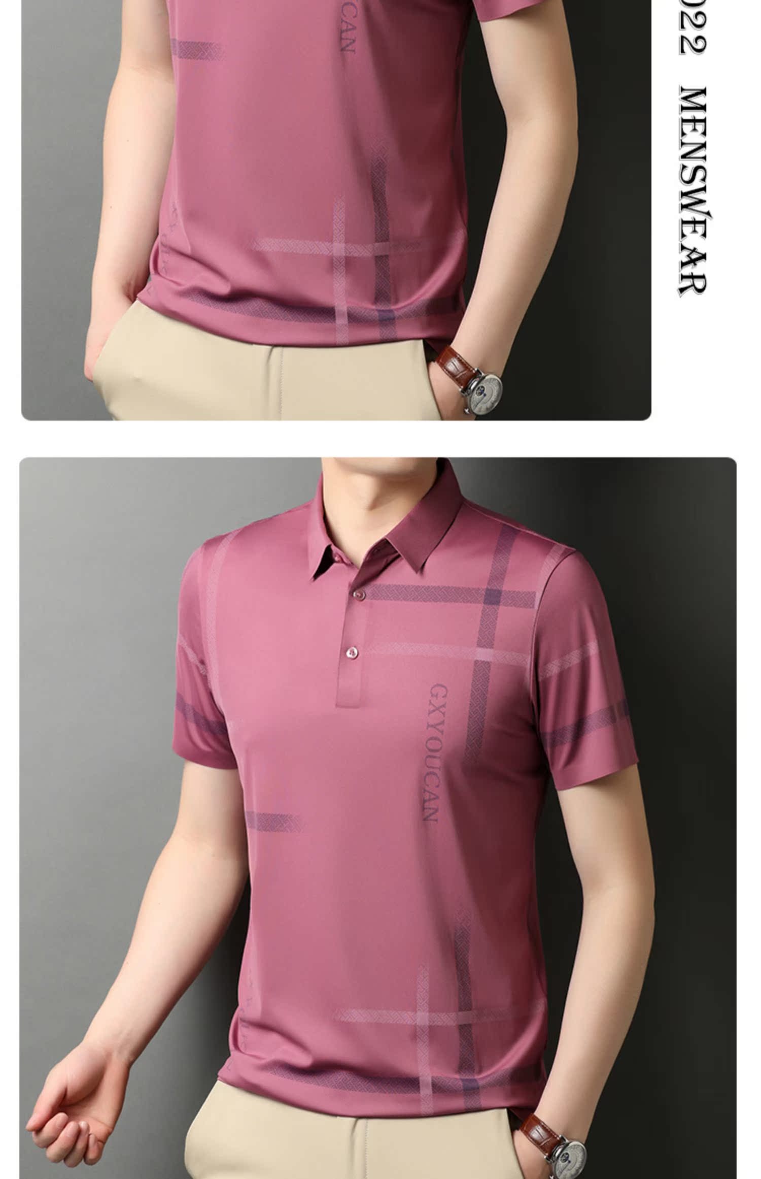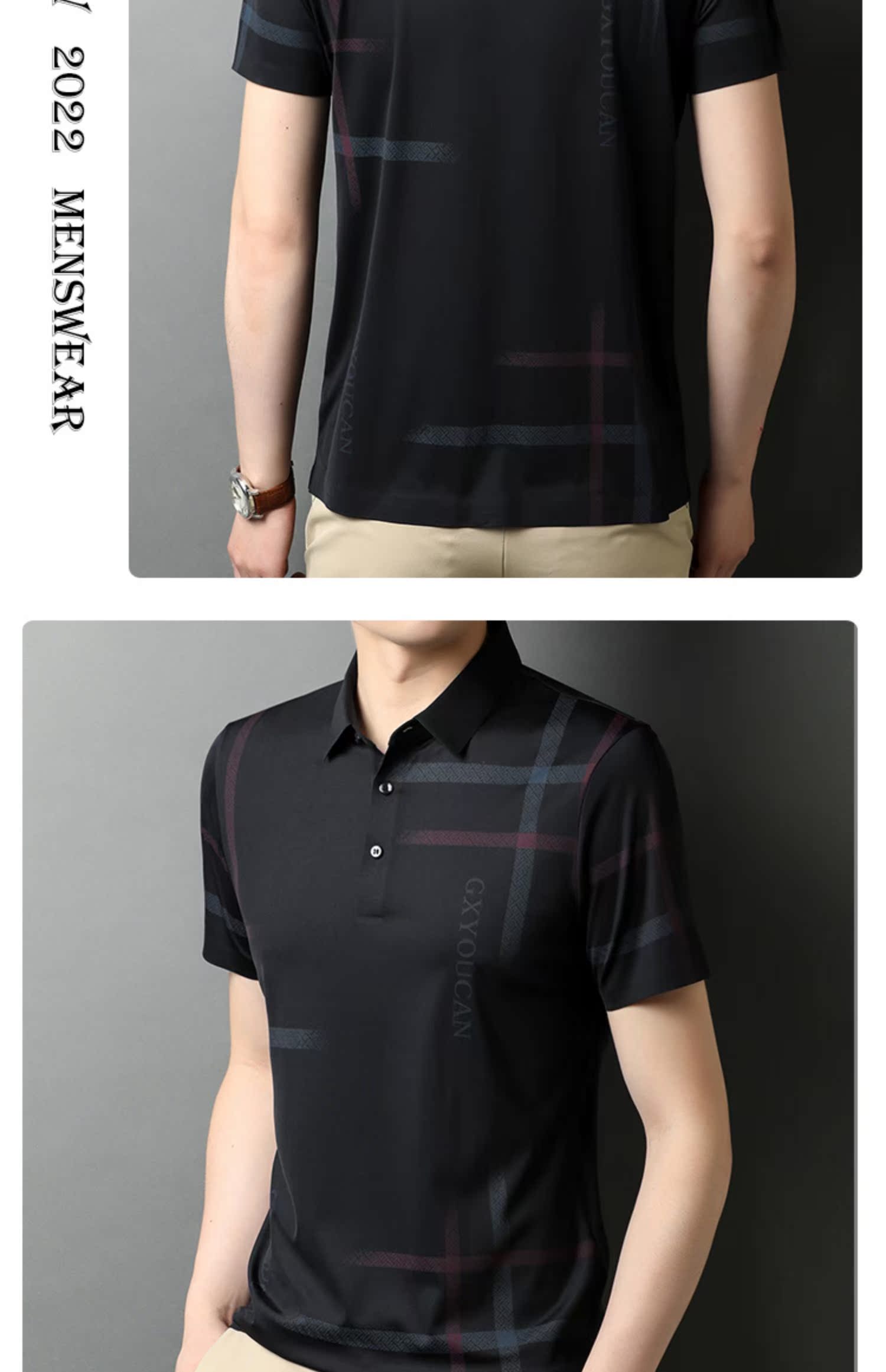Mùa hè lụa dâu tằm ngắn tay áo sơ mi POLO của nam giới băng lụa mát mẻ hàng đầu kinh doanh giản dị áo phông mỏng của nam giới trung niên
