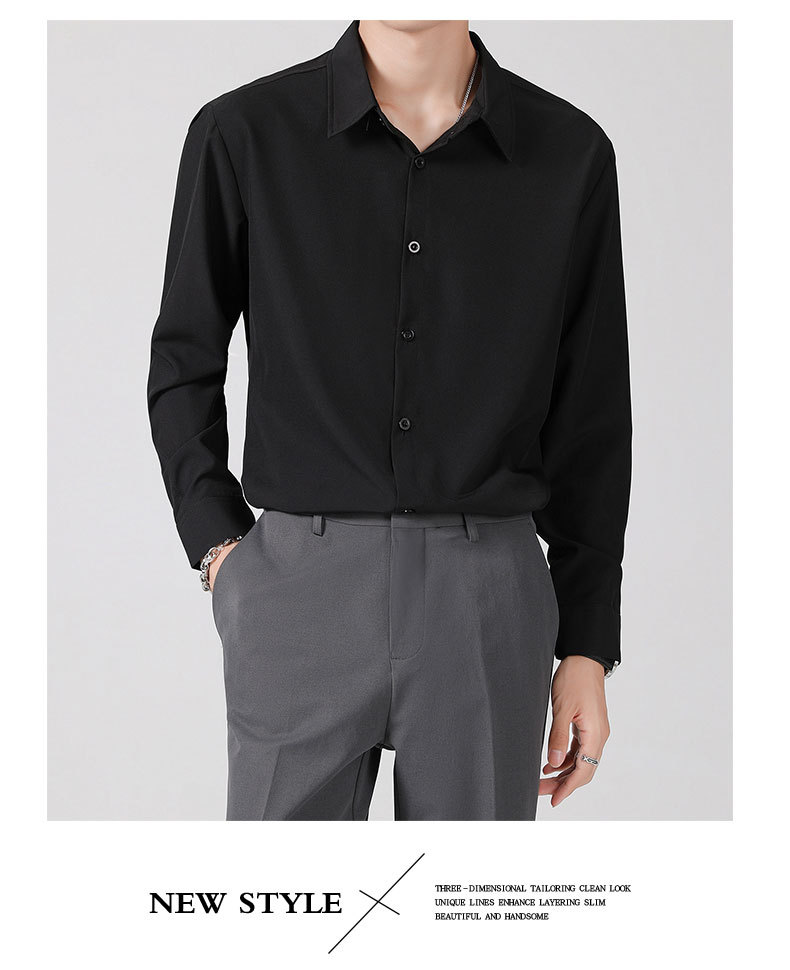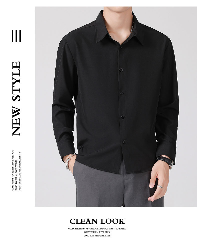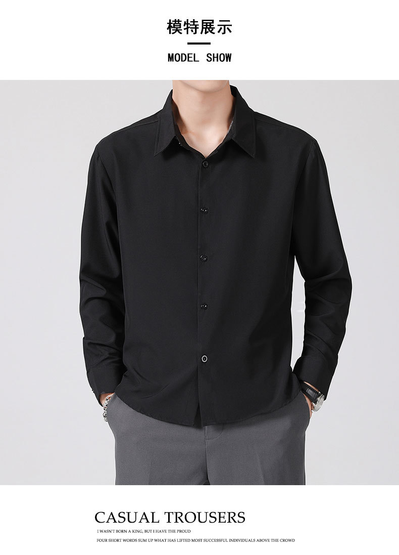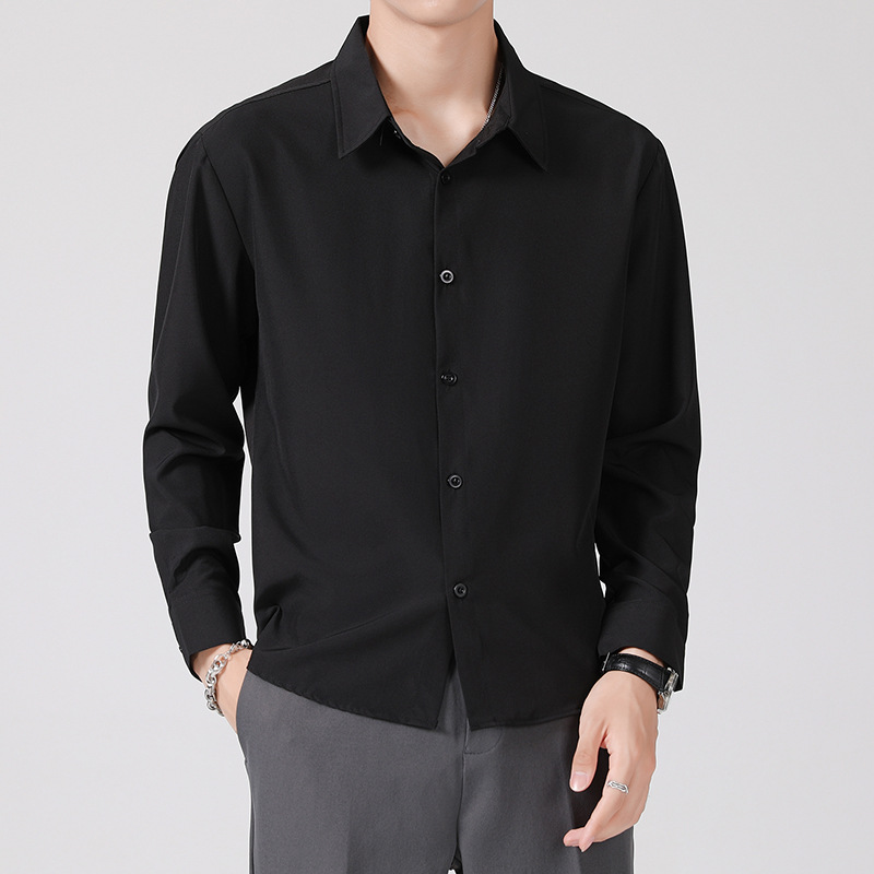 Mùa hè mới áo sơ mi nam dài tay phong cách Hàn Quốc hợp thời trang áo sơ mi nam đẹp trai dáng rộng màu đen