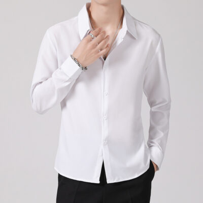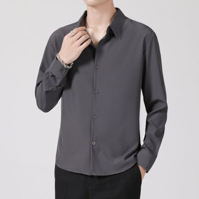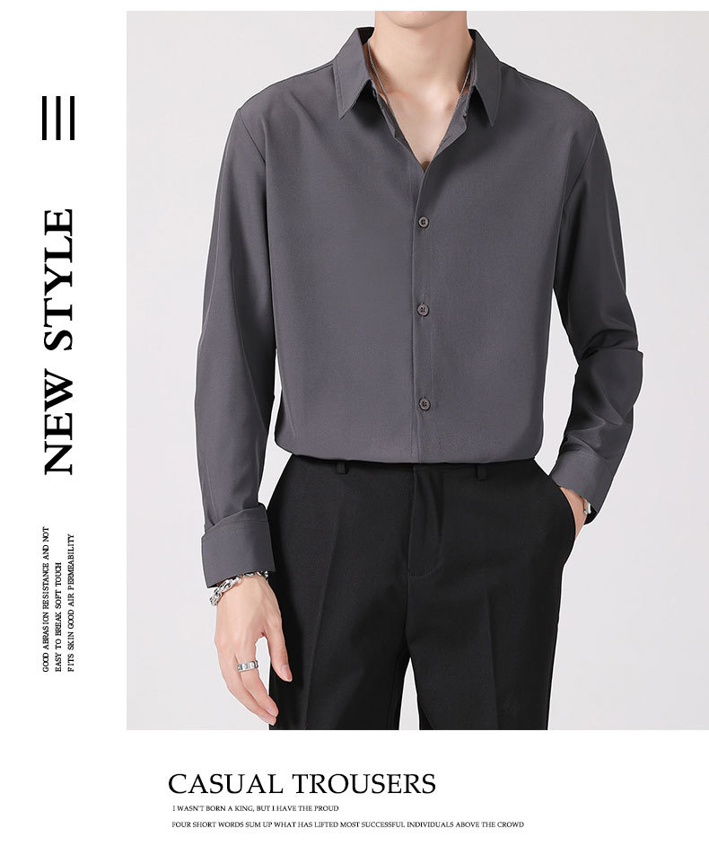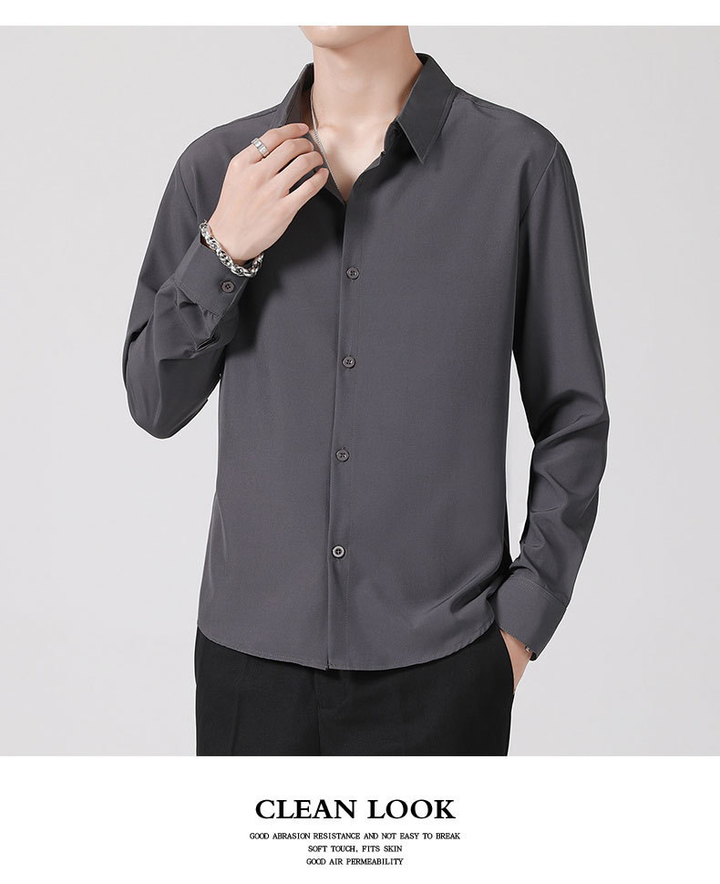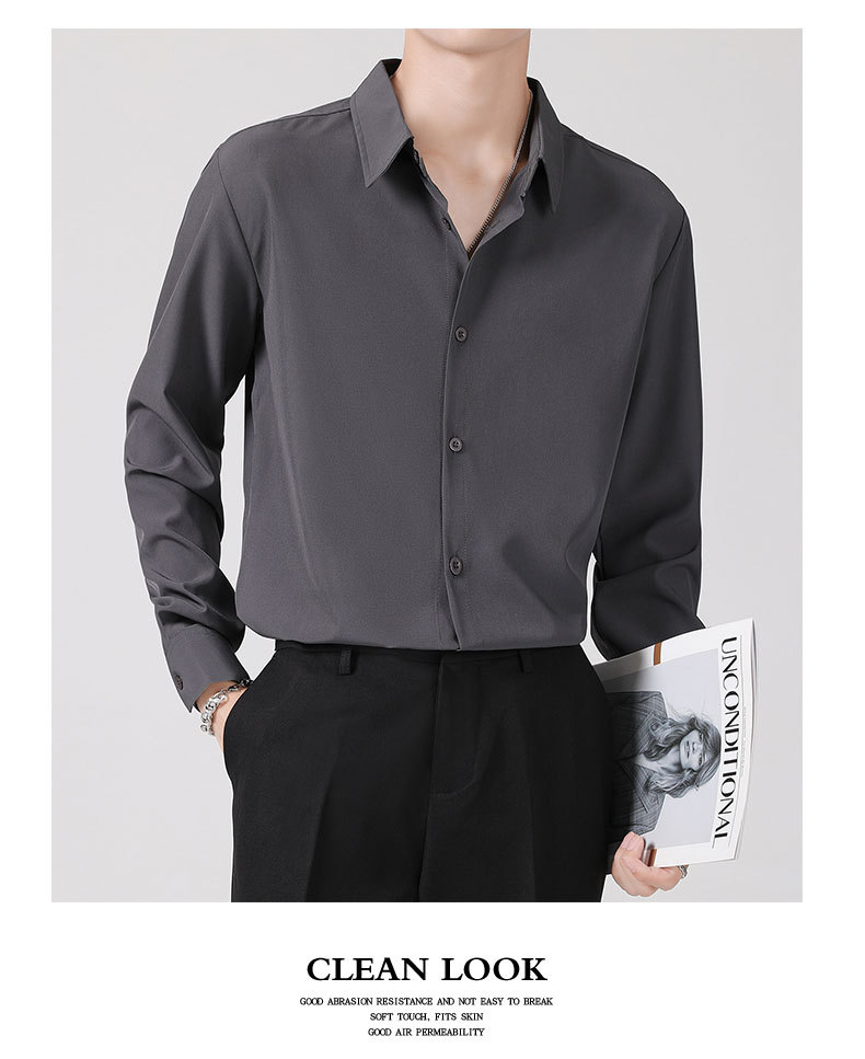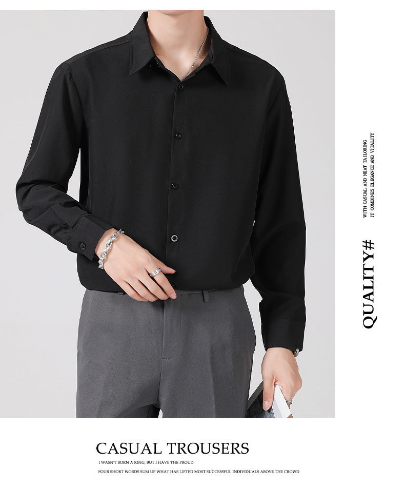 Mùa hè mới áo sơ mi nam dài tay phong cách Hàn Quốc hợp thời trang áo sơ mi nam đẹp trai dáng rộng màu đen