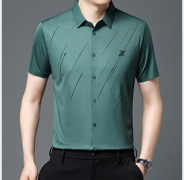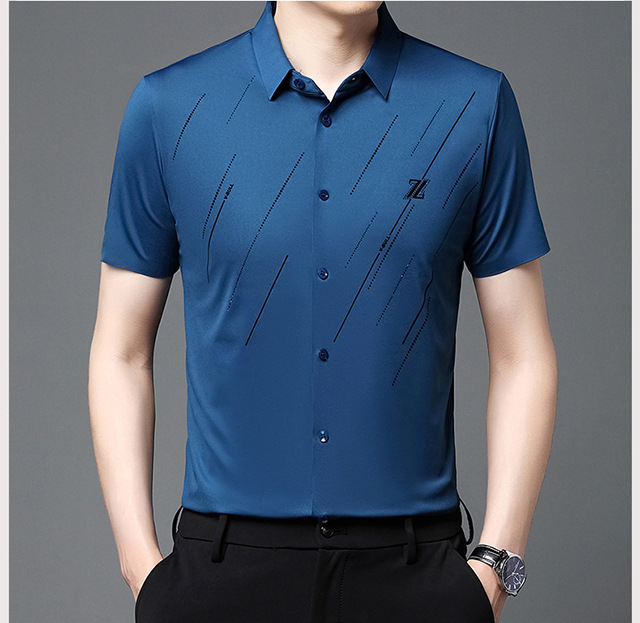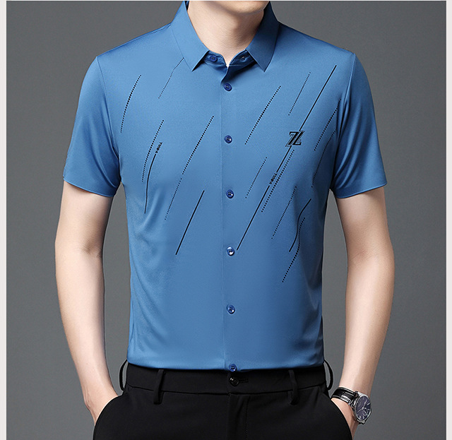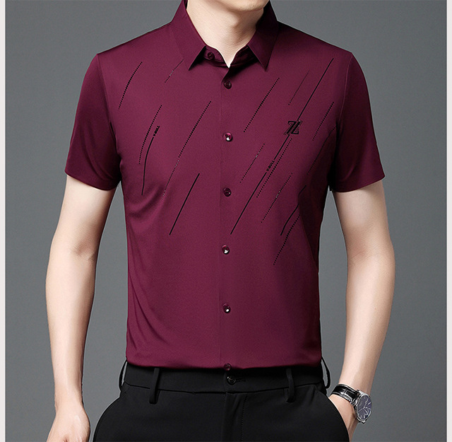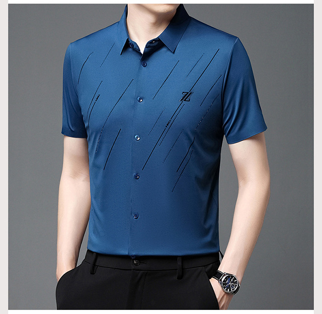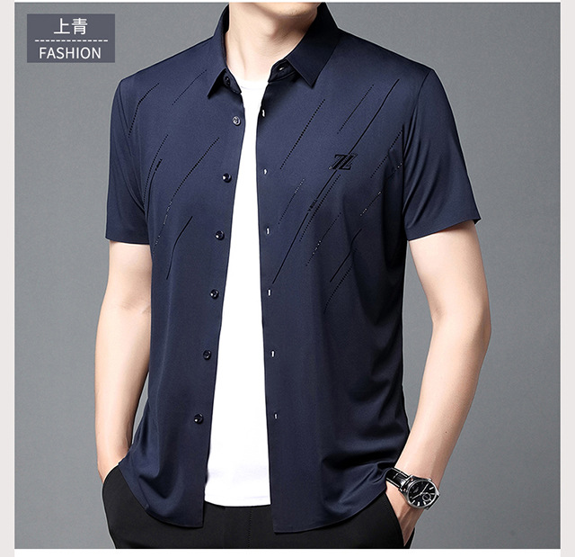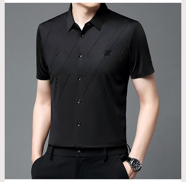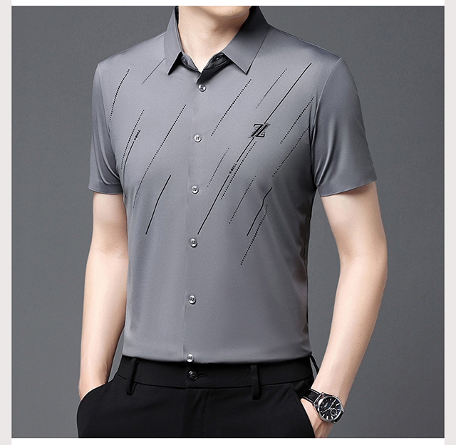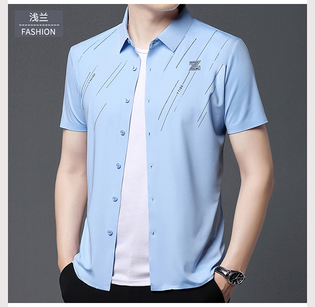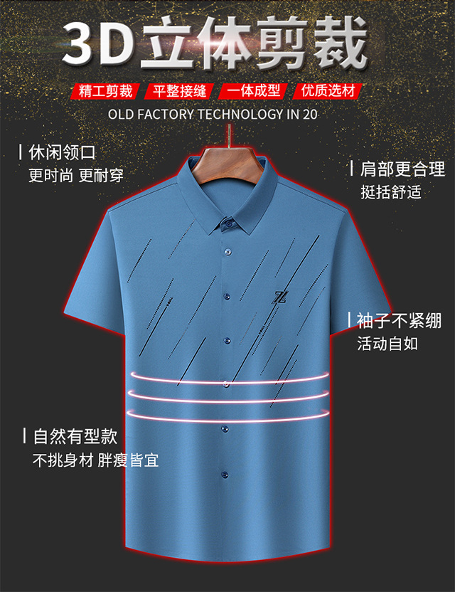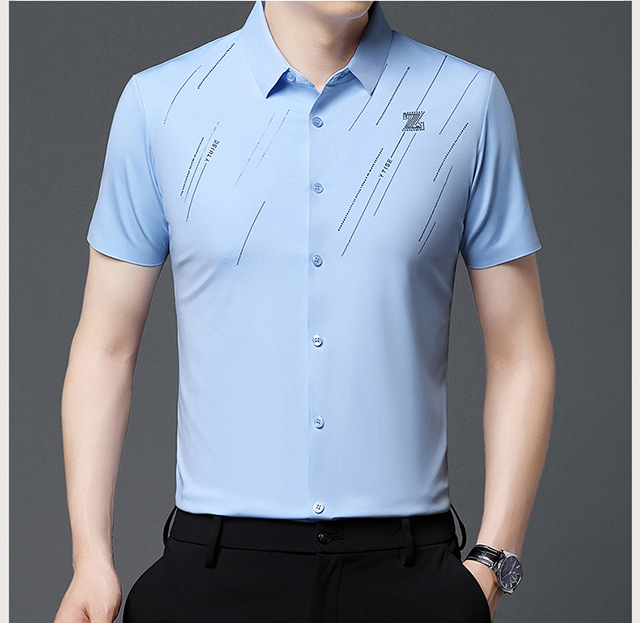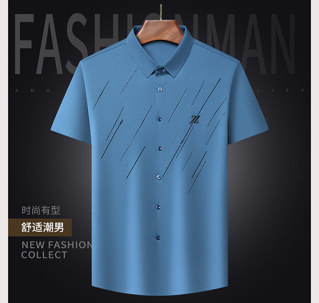 Mùa hè mới áo sơ mi nam ngắn tay thời trang công sở không đánh dấu áo sơ mi chống nhăn không chứa sắt đàn hồi cao một mảnh giao hàng tận nơi