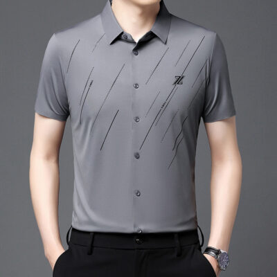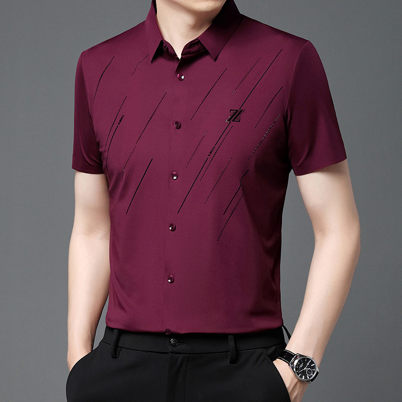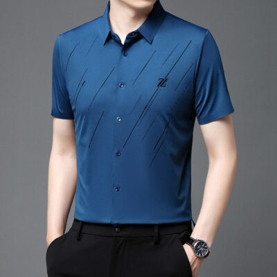 Mùa hè mới áo sơ mi nam ngắn tay thời trang công sở không đánh dấu áo sơ mi chống nhăn không chứa sắt đàn hồi cao một mảnh giao hàng tận nơi