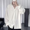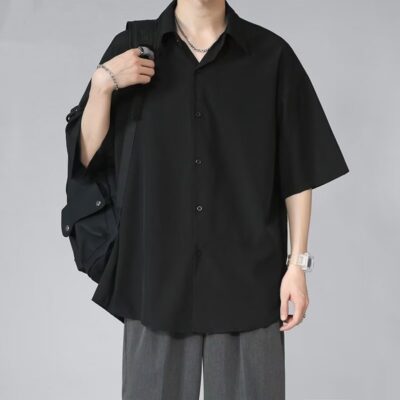 Mùa hè mới cao cấp Nhật Bản nam ngắn tay áo sơ mi nam dáng rộng màu trơn kích thước lớn áo sơ mi nam xếp nếp ve áo