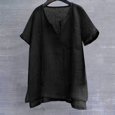 Mùa hè mới cotton và vải lanh đơn sắc áo sơ mi nam ngắn tay đơn giản trẻ trung phong cách Trung Quốc Áo thun nam hợp thời trang Zen