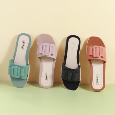Mùa hè mới dép khóa vuông thời trang nữ mặc bên ngoài phiên bản Hàn Quốc nhà đế mềm dép xỏ ngón nữ dép kéo trong nhà