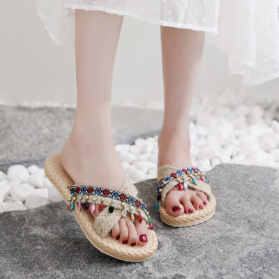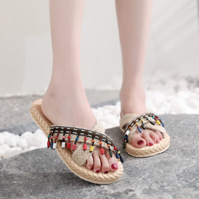 Mùa hè mới giống như ống hút du lịch của phụ nữ dép đế bằng mang espadrille dép xỏ ngón bãi biển thời trang hợp thời trang dép nêm