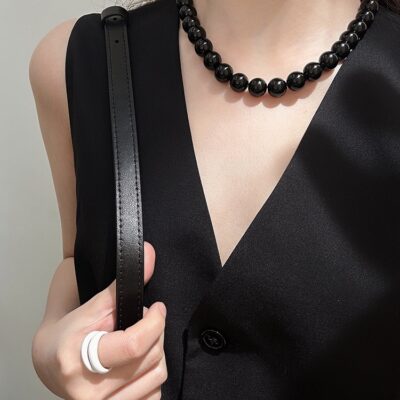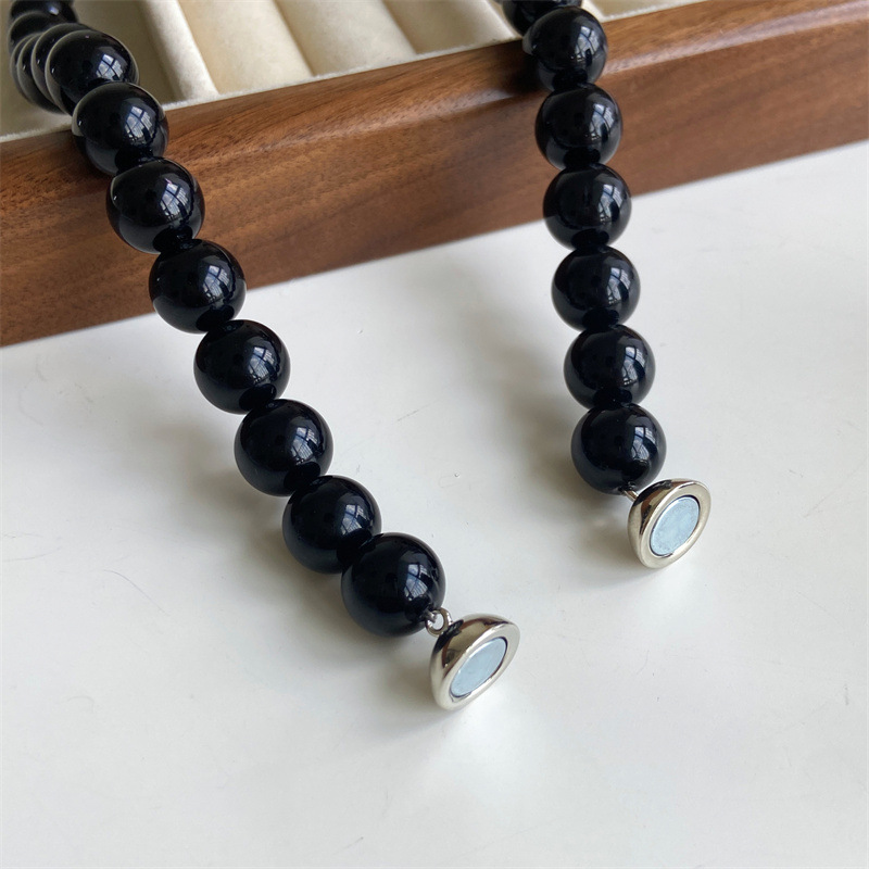 Mùa hè mới mã não đen đính cườm vòng cổ nhẹ sang trọng thích hợp hạt đen xương đòn dây chuyền cao cấp liền mạch hút nam châm vòng cổ