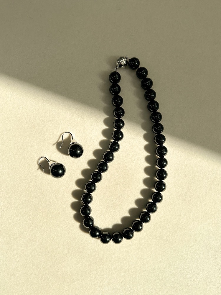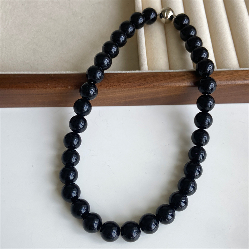 Mùa hè mới mã não đen đính cườm vòng cổ nhẹ sang trọng thích hợp hạt đen xương đòn dây chuyền cao cấp liền mạch hút nam châm vòng cổ