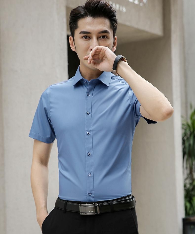 Mùa hè mới phương thức nam ngắn tay màu trơn áo sơ mi không ủi Amazon ngoại thương cỡ lớn áo sơ mi giản dị