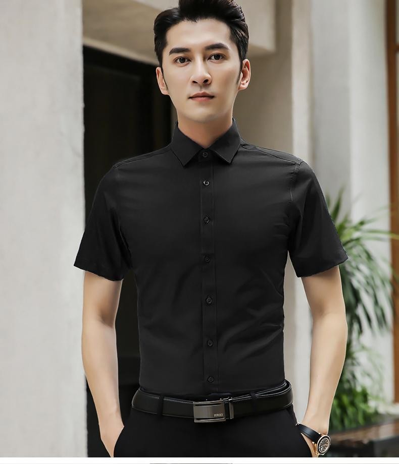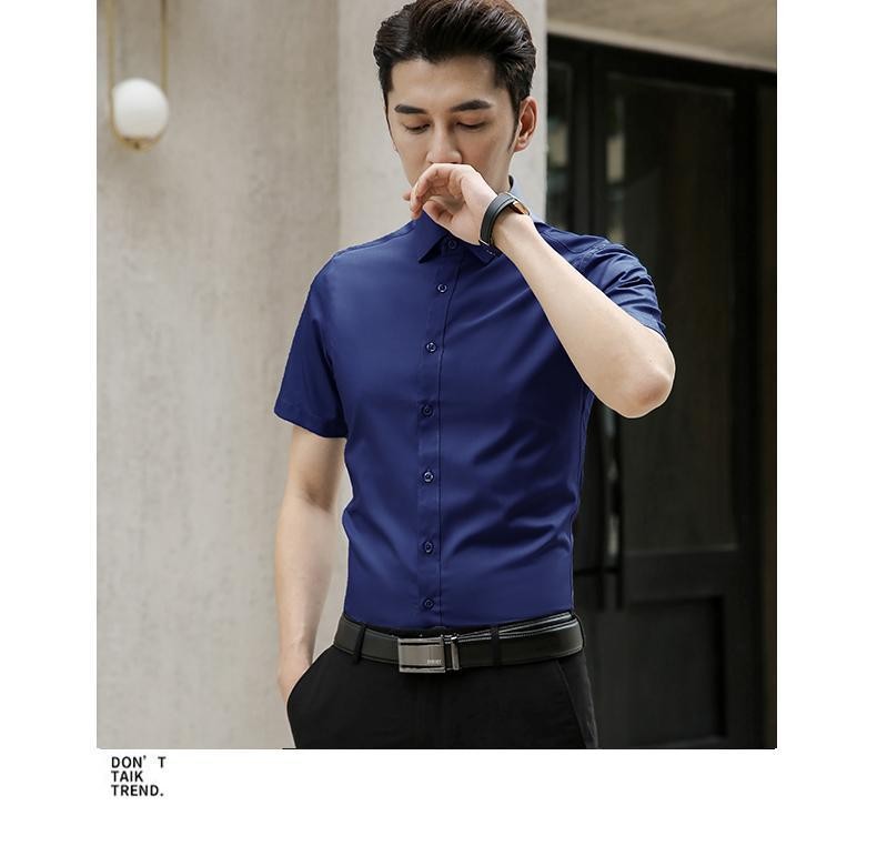 Mùa hè mới phương thức nam ngắn tay màu trơn áo sơ mi không ủi Amazon ngoại thương cỡ lớn áo sơ mi giản dị