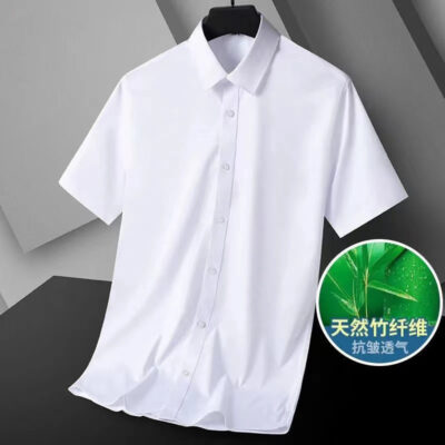 Mùa hè mới sợi tre sơ mi ngắn tay nam công sở chuyên nghiệp chống nhăn không ủi màu tinh khiết áo sơ mi trắng